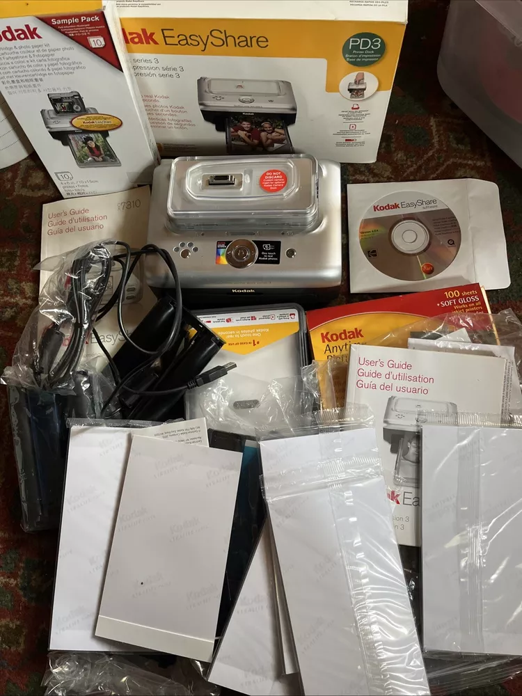 This Kodak EasyShare Camera Dock Series 3 Printer is the perfect accessory for your Kodak EasyShare camera. It is designed to fit cameras of the same brand and series, and is compatible with thermal technology. The printer is portable and comes in a sleek silver color made of other plastic materials. With wireless and USB 2.0 connectivity, this digital photo printer makes it easy to print your photos without the hassle of cables. It has a cable length of 2 ft and was manufactured in Japan. This printer is a great addition to your collection and will make it easy for you to print your photos in color.