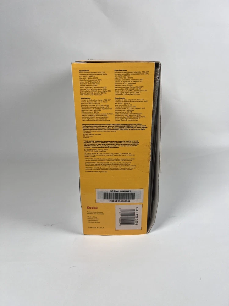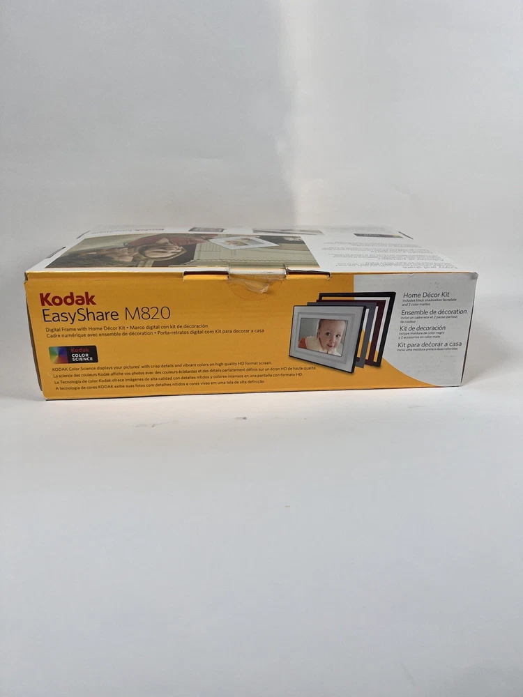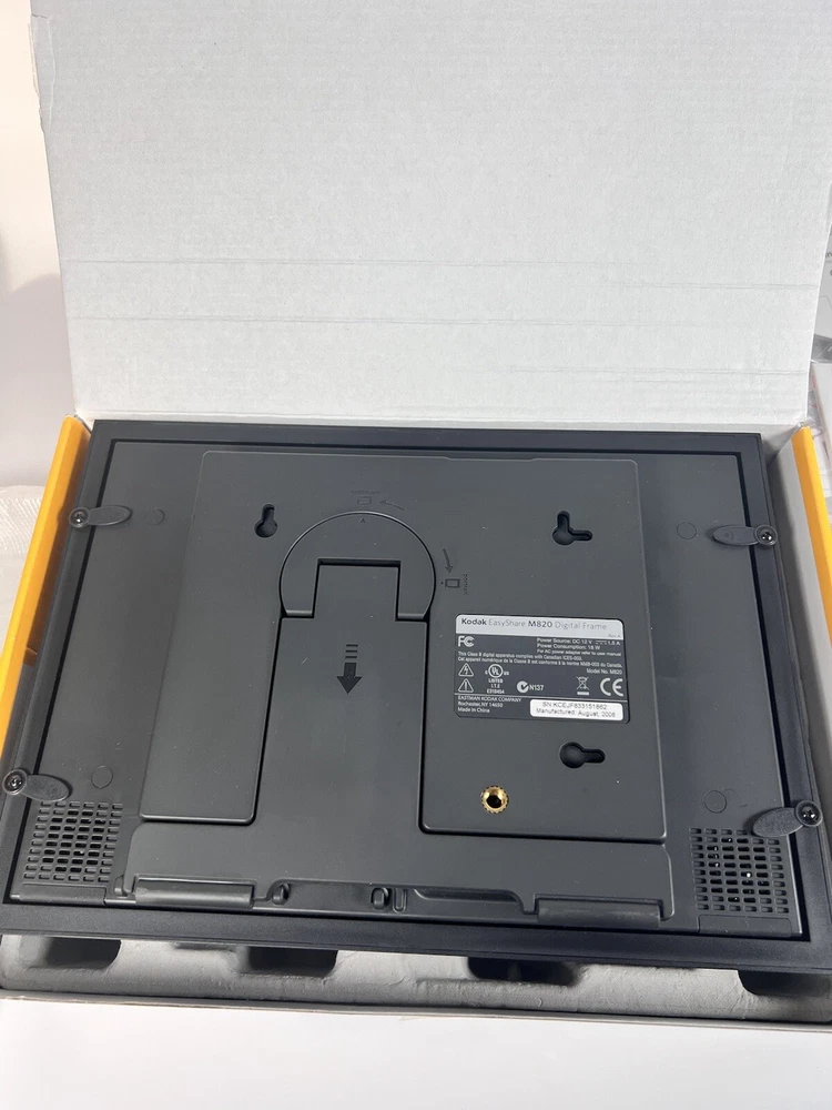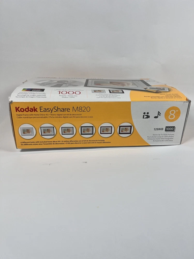 Showcase your cherished memories with the Kodak EasyShare M820 8" digital picture frame. With a display size of 8 inches and an LCD display type, this frame is perfect for bringing your photos to life. The frame can store up to 1000 pictures with the 128MB internal memory capacity and easily transfer photos with the USB connectivity. The Kodak EasyShare M820 is compatible with SD, MMC, xD-Picture Card, Memory Stick, and SDHC external memory cards. Additionally, enjoy the convenience of built-in speakers to play music with your slideshows. Get your Kodak EasyShare M820 here