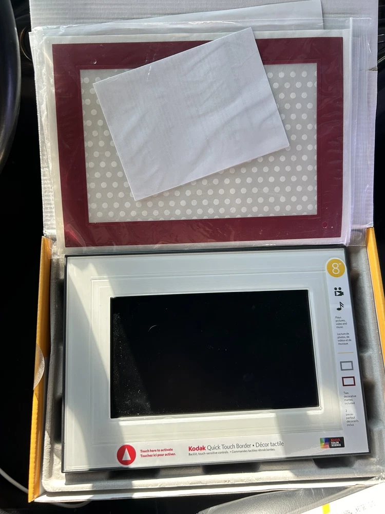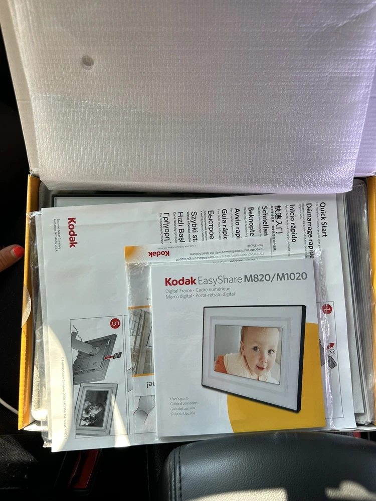 Enhance your photography experience with the Kodak EasyShare M820 digital picture frame. This 8-inch LCD frame is perfect for showcasing your precious moments in high quality. With a internal memory capacity of 128MB, you can store up to 1000 pictures and enjoy built-in speakers for an immersive viewing experience. The Kodak EasyShare M820 is compatible with various external memory cards like SD, MMC, xD-Picture Card, Memory Stick, and SDHC. It also features USB connectivity for easy transfer of pictures. Get your hands on this stylish white digital picture frame and fill it with your favorite memories today!