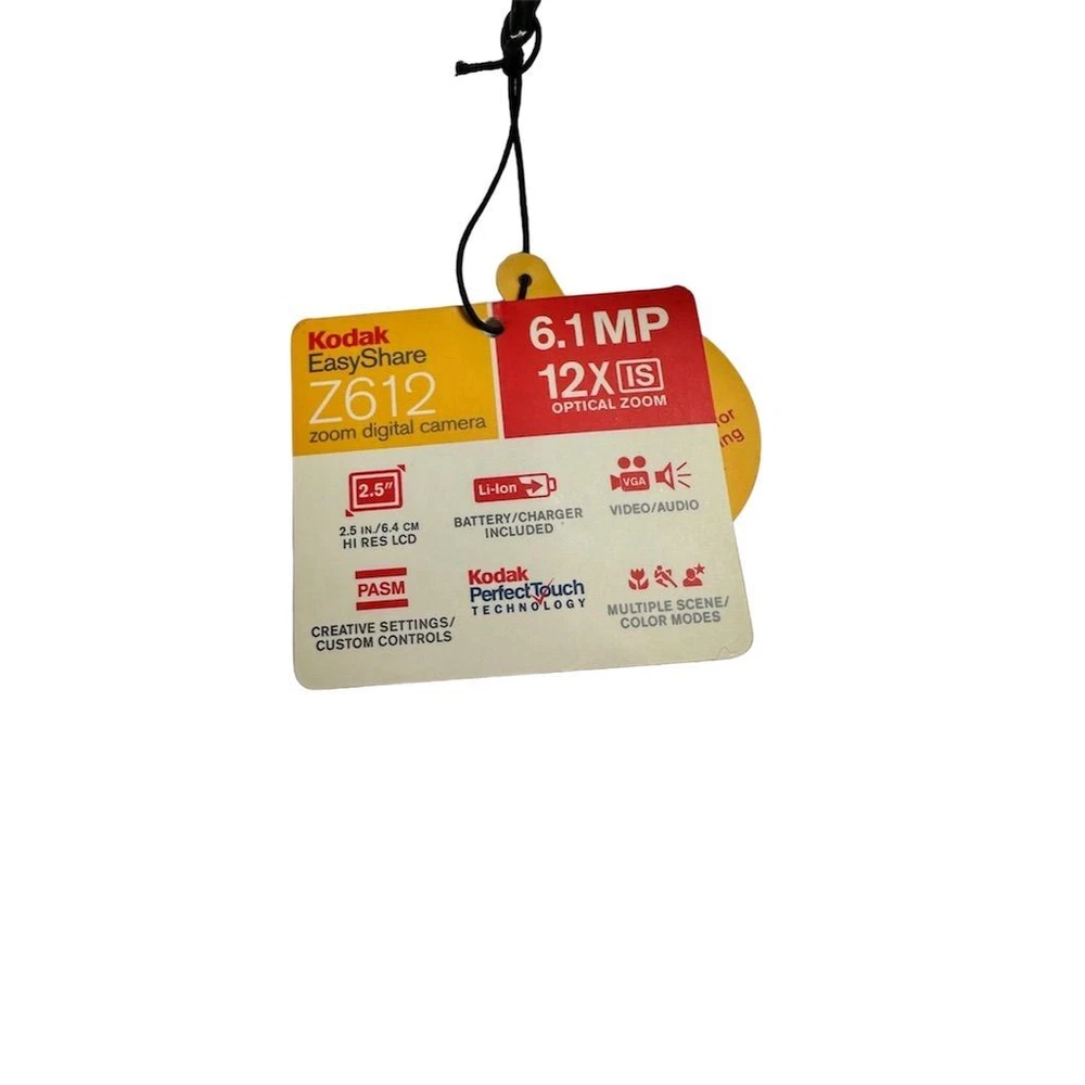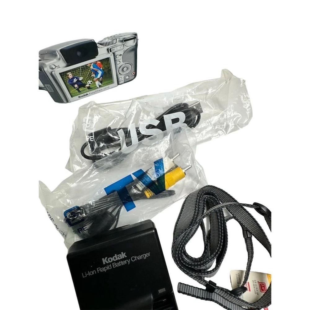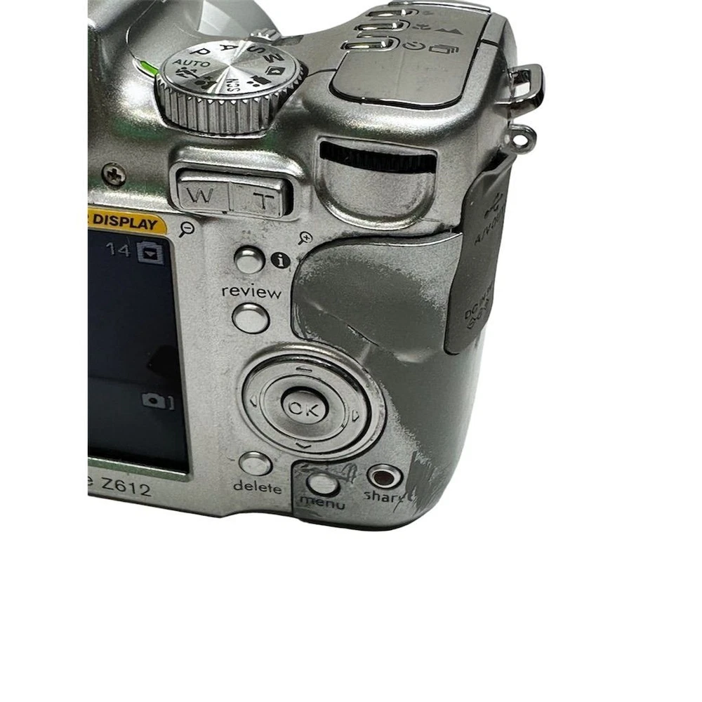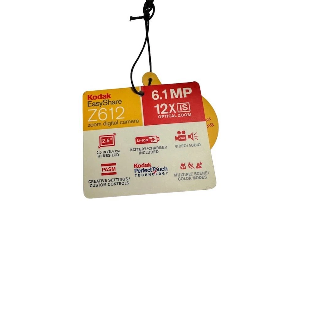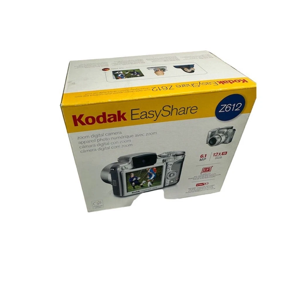 Brand: Kodak Type: Digital SLR Model: EasyShare Z612 Color: Silver Optical Zoom: 12x Features: Image Stabilization, Video recording Maximum Resolution: 6.1 MP Battery Type: Lithium-Ion Screen Size: 2.5Image Stabilization, Video recording Connectivity: USB Item Dimensions: 4.1 in (W) x 3.1 in (H) x 3.1 in (L) Item Weight: 10.8 oz Condition: Pre-owned. Some wear visible. Small crack in plastic grip, which does not affect functionality.