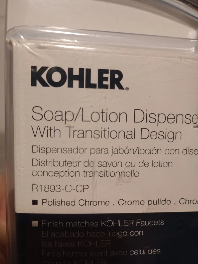 Model:Kohler R1893-C-CPNumber of Items in Set:2Material:ChromeType:Soap DispenserManufacturer Part Number:R1893-C-CPBrand:KohlerInstallation:N/APersonalize:NoItem Diameter:VariesUPC:650531179937Country/Region of Manufacture:Chinagtin13:650531179937Assembly Required:YesRoom:Kitchen, BathroomColor:ChromeFinish:ChromeMPN:R1893-C-CPFeatures:Smooth, MechanicalDepartment:AdultsStyle:ModernSet Includes:Soap Dispenser, Soap BottleMounting:Built-in Undercounter