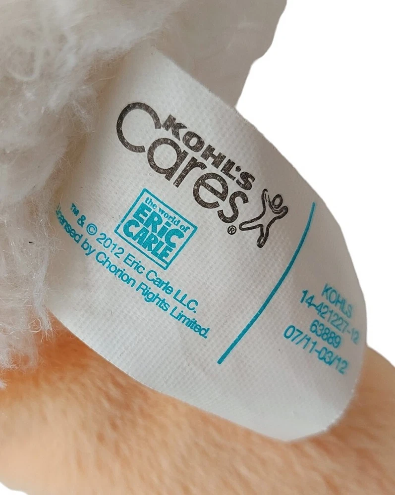 Kohls Cares Eric Carle Plush White Lamb Soft Stuffed Animal Toy White 11 Inch