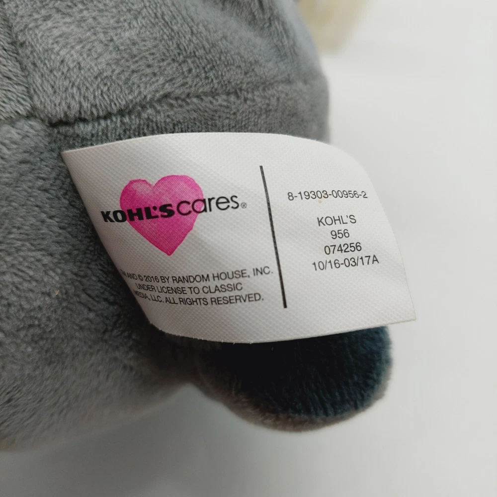 Animal:ElephantType:PlushBrand:Kohl's CaresAge Level:4-7Features:Retired, WashableCharacter Family:The Little Golden BooksSize:Small (6-14 in)Country/Region of Manufacture:ChinaYear:2016Recommended Age Range:3+Color:Graygtin13:Does not applyUPC:Does not apply