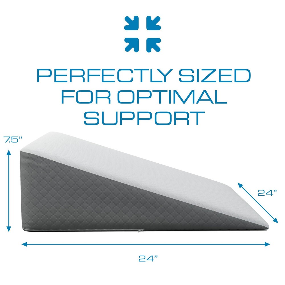 Kӧlbs Adjustable Bed Wedge Pillow A good day starts with a great night’s sleep. Acid reflux, neck and back pain, post-surgery and other medical conditions can often rob you of the sleep your body needs. The Kӧlbs Adjustable Bed Wedge offers optimal positioning for a comfortable and relaxing slumber. Memory Foam Upper Layer The top layer of the cushion features plush memory foam for comfort and excellent pressure prevention. Medical Grade Foam Core A high density core layer supports the memory foam to ensure just the right firmness and support. Adjustable Height Always the right height. Adjustable pillow allows for a host of comfort options. Luxurious Velvet Jacquard Cover A removable, cover is composed of thick velvet for a plush and comfy feel for your feet. SUPER COMFORTABLE BED WEDGE PILLOW, SNORING PILLOW: Available in 2 height options – 7.5 inch and 12 inch height. (24 x 24 x 7.5 or 25 x 25 x 12) This is the 7.5 inch option Wedge Pillow LUXURIOUS AND STYLISH JACQUARD PILLOW CASE: Hey it’s your bedroom, not a hospital room, give it some style. The Kӧlbs Wedge features a classic yet contemporary design. The removable jacquard pillow case protects the incline pillow from stains while promoting a comfortable night’s sleep. Cover is machine washable and can be removed from the triangle pillow core. IDEAL FOR RECOVERY IN BED: Aches and pain often robs you of a good night’s sleep. Includes: snoring, neck and back pain and post-surgery ailments. The best wedge pillow for sleeping. Wedge pillow for acid reflux relief. IDEAL FOR RECOVERY IN BED: Aches and pain often robs you of a good night’s sleep. Includes: snoring, neck and back pain and post-surgery ailments. The best wedge pillow for sleeping. Wedge pillow for acid reflux relief. ELEVATED PILLOWS FOR SLEEPING: Ideal for head, foot or leg elevation. Great pillow for snoring. . Wedge pillow for sleeping comfort. 1 wedge pillow per pack.