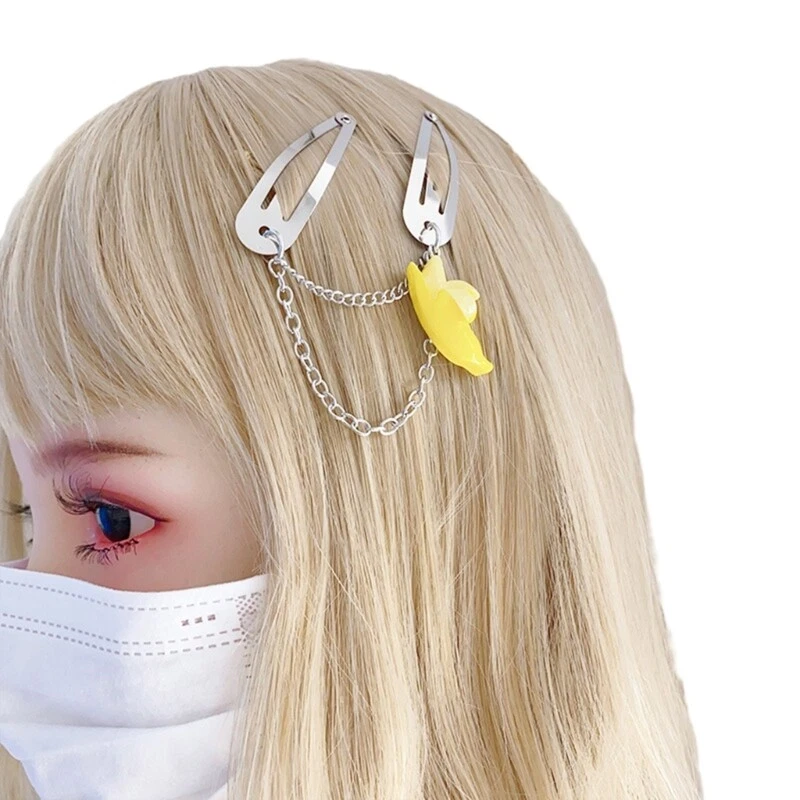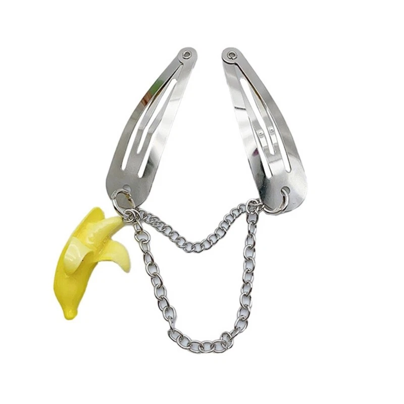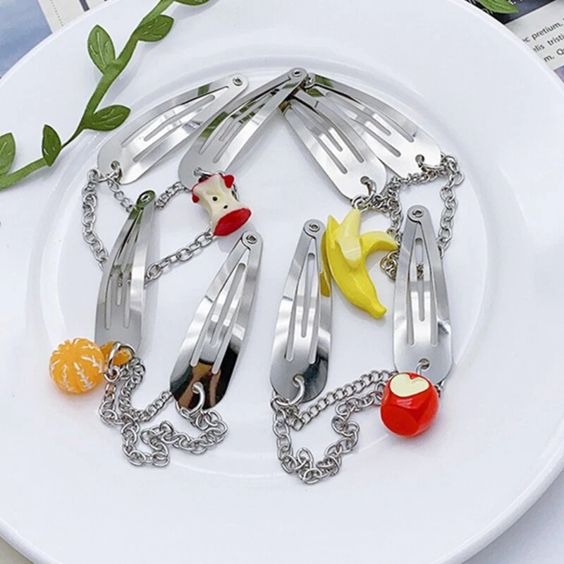 Features: Brand new and high quality Add a touch of edgy to your hair with this Fruit Chain Metal Clip. Stand out from the crowd with its distinctive and unique designs. Crafted from high quality alloy material, this hair clip is durable and resistant to deformation. The intricate craftsmanship ensures a high level of detail in the designs. Suitable for girls, women, children, and even pets, this versatile hair accessory can be enjoyed by people of all ages. Whether it's a party, everyday wear, or any other occasion, this hair clip is a perfect choice. It adds a stylish and trendy touch to your overall look. Express your unique and make a statement with this Hair Clip. Let your hair and stand out from the rest. Specifications: Material: Alloy, Resin Size: approx.9.5cm/3.74in 4 Color and Optional: As choose. Quantity: Pc Package Includes: 1Pc x Hair Clip note: Please allow 0-1cm error due to manual measurement. please make sure you do not mind before you bid. Due to difference between different monitors, the picture may not reflect the actual color of the item.