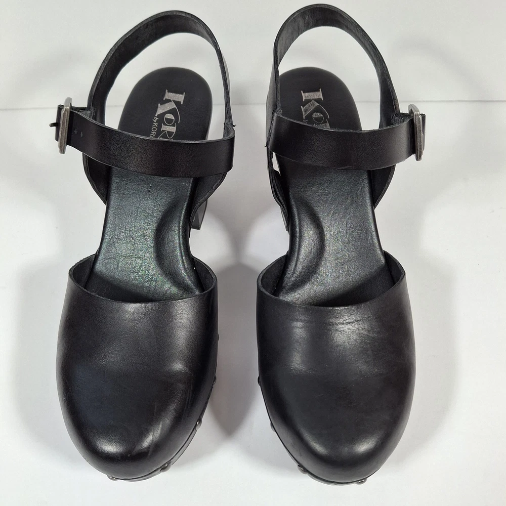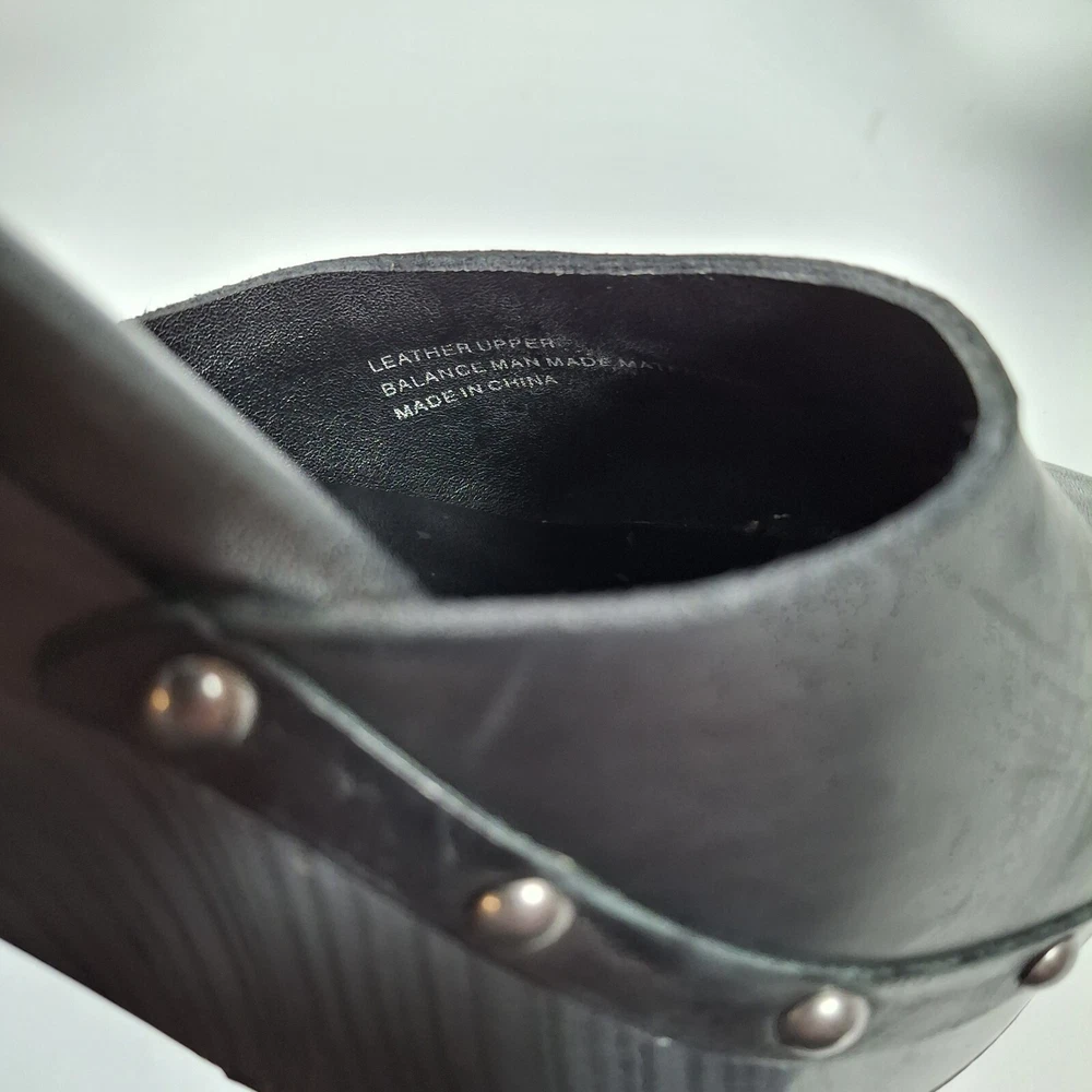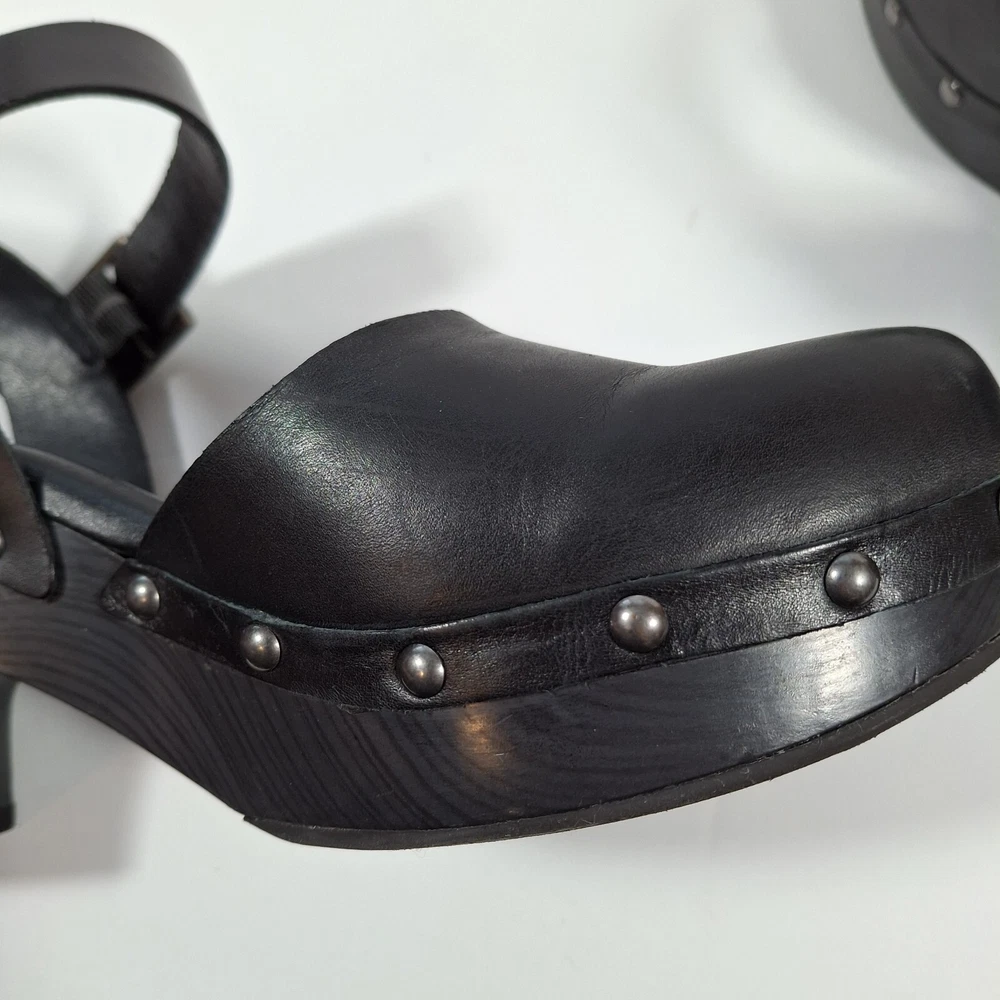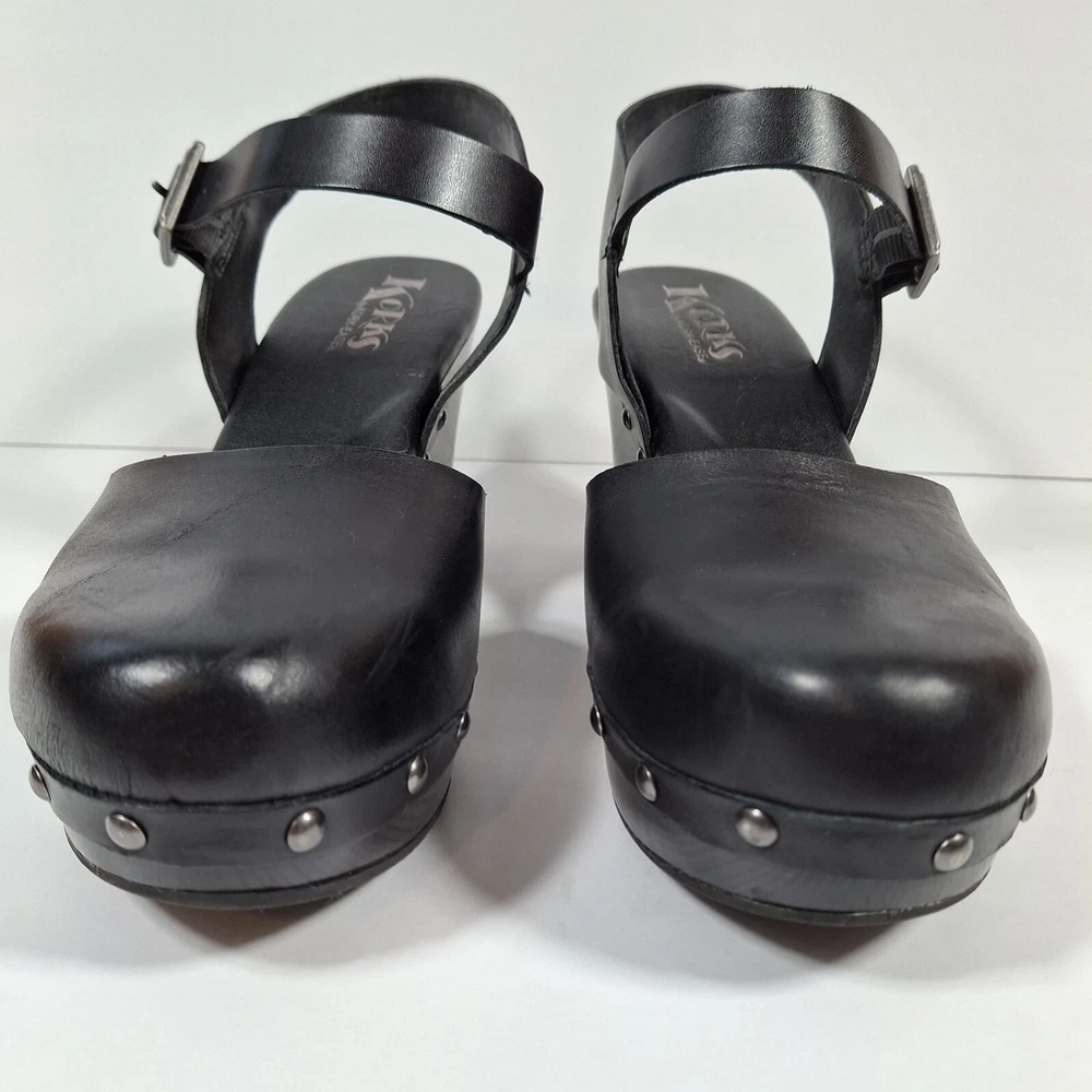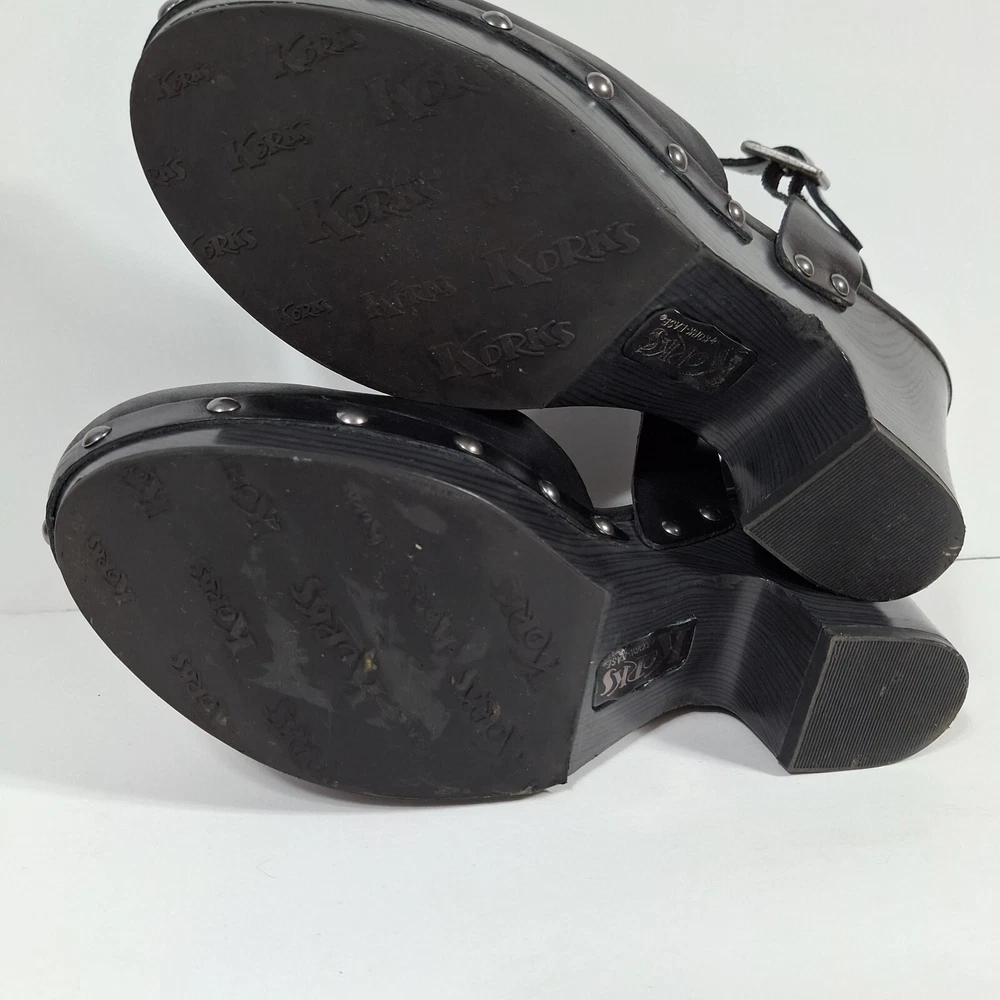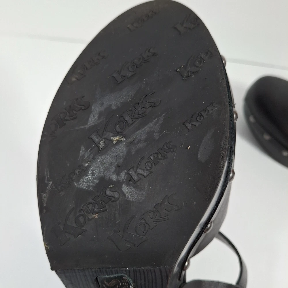 Korks Abloom Clog Platform Slingback Shoes Women 9 Black Leather Rivets *Scuff Wear Inside Shoe, Damage to Arch of Heel See Pictures