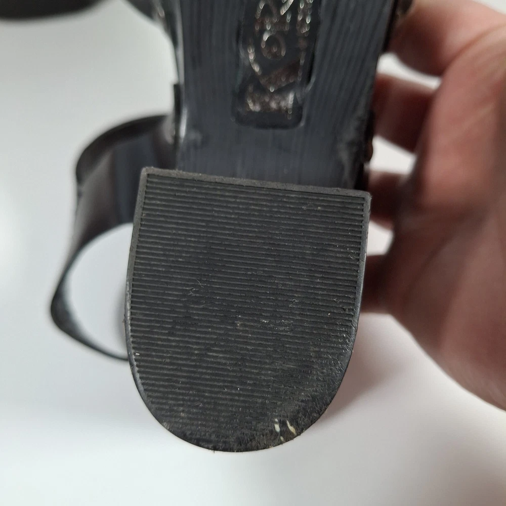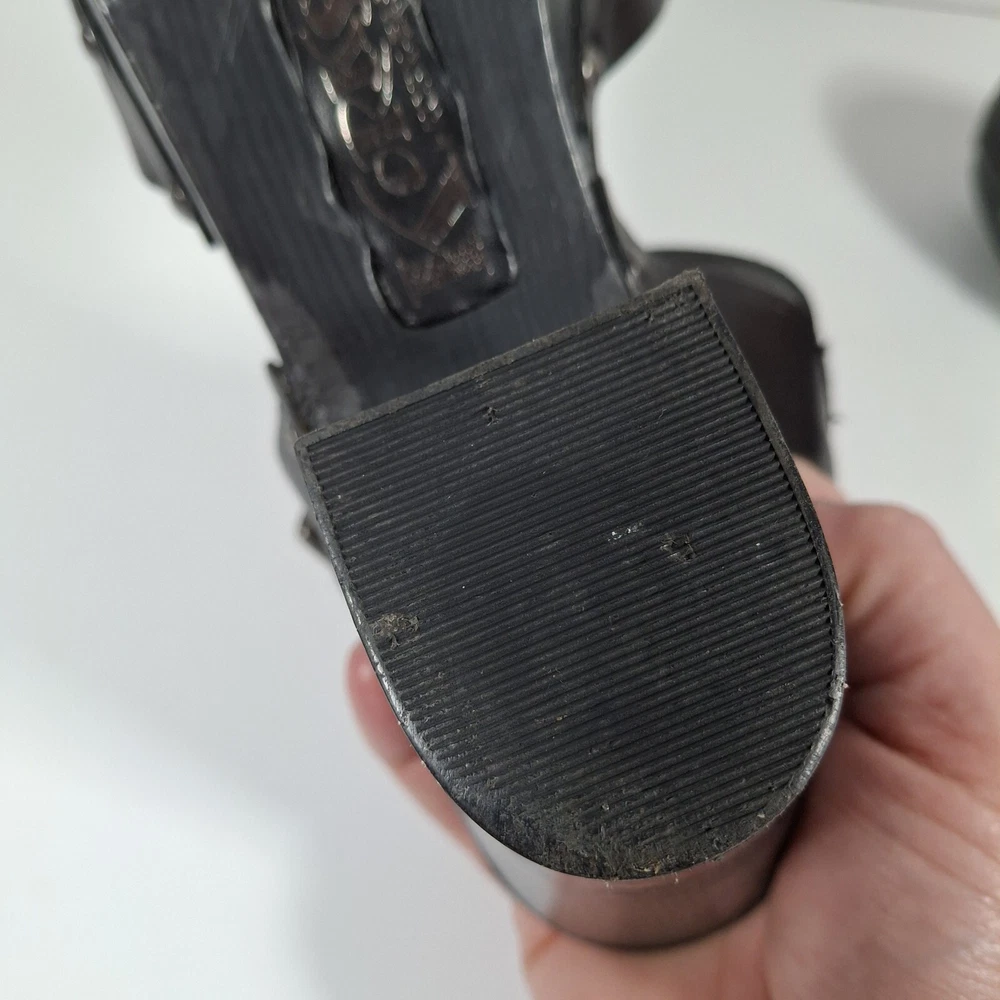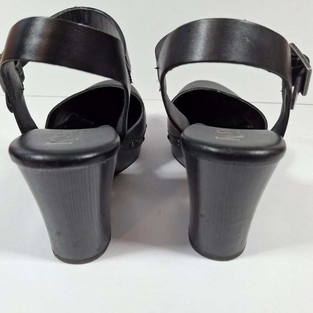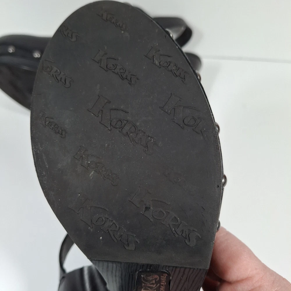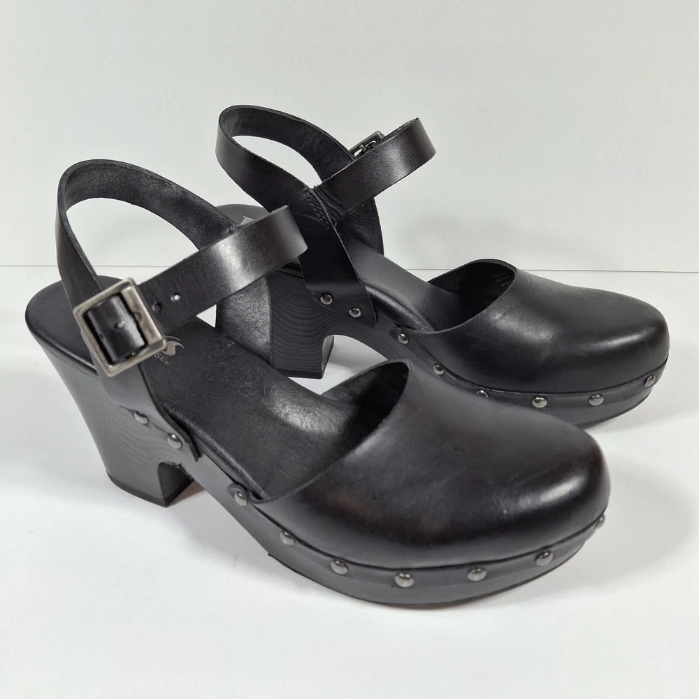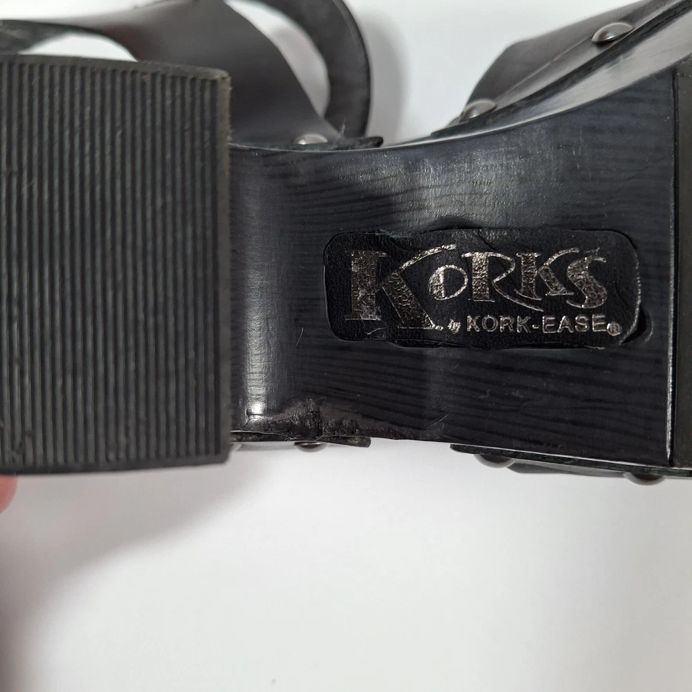 Korks Abloom Clog Platform Slingback Shoes Women 9 Black Leather Rivets *Scuff Wear Inside Shoe, Damage to Arch of Heel See Pictures