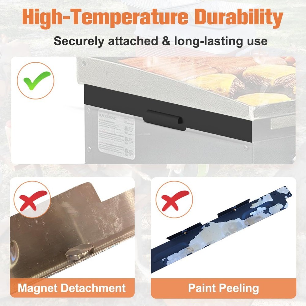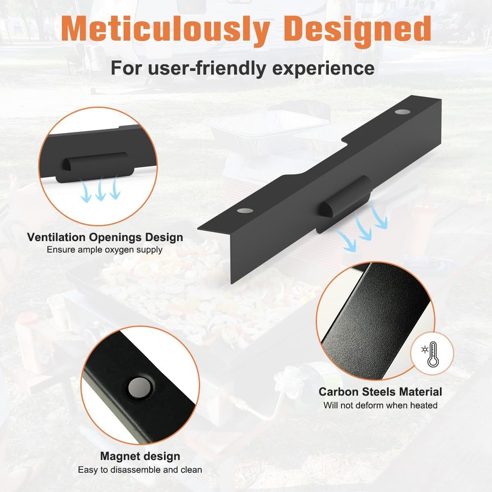 Koutemie Wind Guard for Blackstone 22" Griddle Accessories with Magnetic Grill Heat Shield, Heavy Duty Steel Wind Screens Compatible with Rear Grease Cup and Side Shelf, Black ACHIEVE HIGHER HEAT EFFICIENCY -- Enhance heat distribution and maximize flame efficiency with our wind screens. Bid farewell to flame blowouts and insufficient side table heat. Our grill accessories guarantee even heating, reduced cooking times, and propane savings. Elevate your outdoor cooking experience with optimal heat management. PREMIUM QUALITY MAGNET and STAINLESS STEEL -- These high-quality grilling accessories are made from heavy-duty powder-coated steels. With excellent durable high-temperature, they are built to last. Additionally, the easy-to-clean feature adds to their convenience. These accessories are good buddy for griddle. HIGH COMPATIBLE -- Our wind guards provide excellent coverage for the gaps between the griddle top and burners. They are designed to be compatible with rear grease cups, side shelves and covers. With a standard size design, they fit perfectly with most griddles, ensuring compatibility and ease of use. EASY to USE -- This wind screen features a unique fixed structure that is stable and does not wobble. The convenient design makes it easy to install, remove, clean, and carry. There are two installation options for the magnets: facing up or facing down. You can choose the installation method that best suits your needs. AFTER-SALES SUPPORT -- Our Wind Guard is specifically designed to fit the Blackstone Griddle 22 Inch. Please ensure you verify the length of your Griddle before placing an order to avoid any compatibility issues. If you have any questions or concerns, please don't hesitate to contact us. Our dedicated team will respond promptly within 24 hours to assist you. Product Description: Experience worry-free cooking even on windy days with our wind shields. Say goodbye to flame blowouts as these shields effectively maintain a steady flame, resulting in more even heat distribution across the cooking area. Additionally, they help reduce pre-heating time, allowing you to start cooking faster. Enjoy consistent and efficient heat control with our reliable wind shields. Key Features: 1, Block the wind blowing out the flame. 2, Stop the heat from reaching the shelf. 3, Stabilize the temperature of griddle. 4, Save time for outdoor cooking. 5, Help you save the propane outdoors. 6, Magnet design, easy to use, remove and clean. Specification: Color: Black Material: Heave Duty Steel Item Size & Quantity: 13.8" X 2 + 8.7" X 2 Item Weight: 1.04 Lbs Fit for: 22" Griddle Shipping We offer FREE shipping on all orders! We ship within Three business days of payment, usually sooner. We use a selection of shipping services such as UPS, FedEx, USPS etc. We only ship to the lower 48 states, no APO/FPO addresses or PO Boxes allowed. Local pickups and combined shipping options are not provided at this time. Return You can return a product for up to 30 days from the date you purchased it. Any product you return must be in the same condition you received it and in the original packaging. Please keep the receipt. Feedback Customer satisfaction is very important to us. If you have any problem with your order, please contact us and we will do our best to make you satisfied. Contact Us If you have any queries, please contact us via ebay. We usually respond within 24 hours on weekdays. Please visit our eBay store to check out other items for sale! Thank you for shopping at our store.