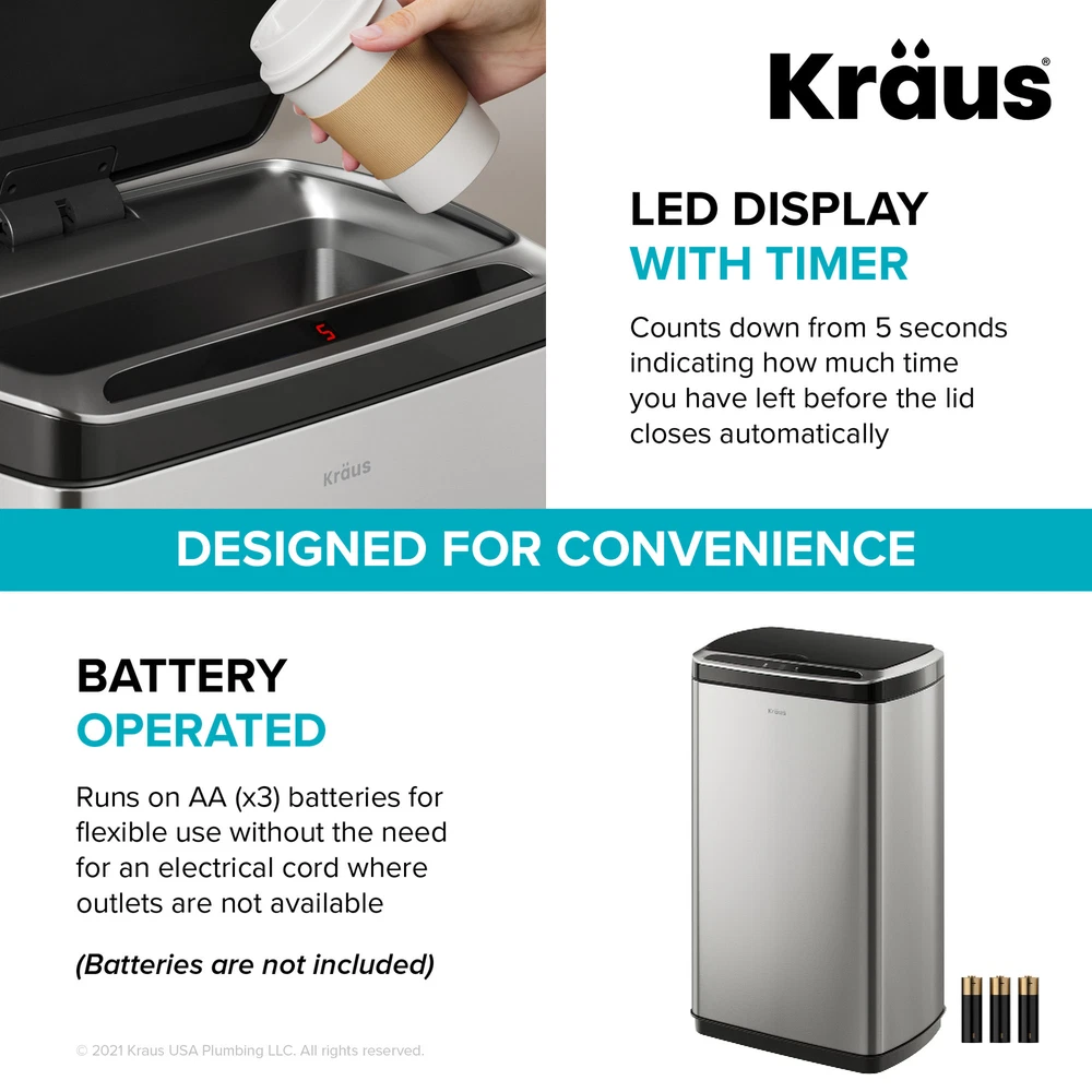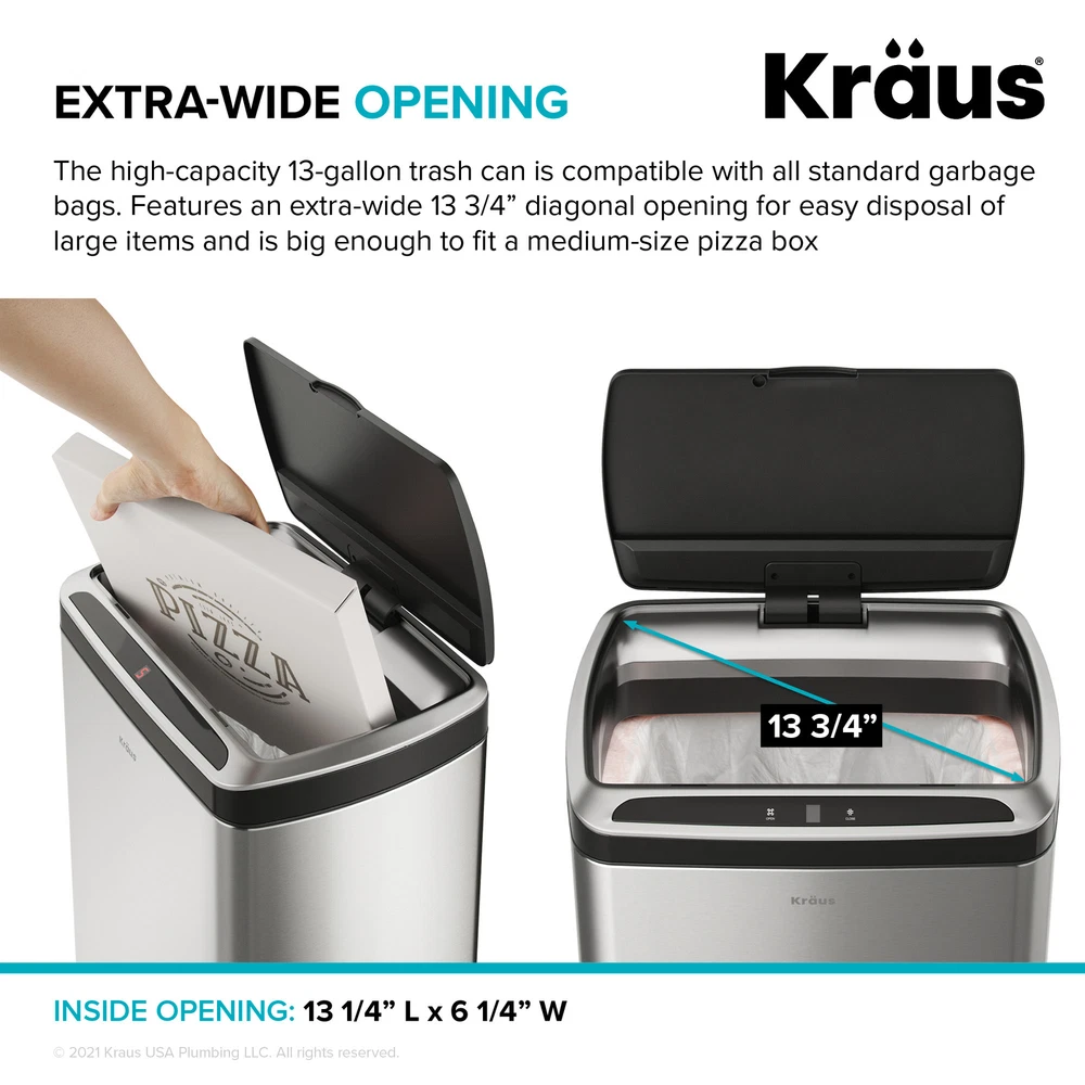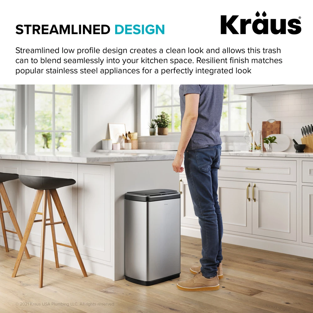 Powered by Frooition All Categories Kraus KTCS-10 GarbagePro 13 Gallon Hands-Free Motion Sensor Free Standing Trash Can Overview Item Description Kraus KTCS-10 Features: Covered under Kraus' 1 year limited warranty Constructed of stainless steel Internally positioned hinges ensures the lid will not hit objects behind it, protecting against scuffs and scratches All hardware required for installation is included SoftShut™: lid closes gently after a 5-second countdown when motion is no longer detected. Motor-operated for smooth and quiet closing closes gently after a 5-second countdown when motion is no longer detected. Kraus KTCS-10 Specifications: Height: 24-5/8" (top to bottom) Width: 15-1/8" (left to right) Depth: 10-1/4" (front to back) Capacity: 13 gallons About Kraus GarbagePro: The KRAUS GarbagePro 13 Gallon Touchless Motion Sensor Trash Can features a built-in infrared sensor allowing you to open the lid with the wave of a hand for convenient hands free disposal of waste. The motion sensor detects movement within 6 inches for easy and intuitive operation. When motion is no longer detected, the LED display counts down from 5 seconds before the lid shuts with a gentle SoftShut™ mechanism. A button-operated manual mode allows you to keep the lid open for an extended period of time for longer tasks. The high-capacity 13-gallon garbage can is compatible with all standard garbage bags and features an extra-wide 13 3/4“ opening for easy disposal of large items like medium size pizza boxes. The innovative bag securing system holds trash bags firmly in place and out of sight, with dual securing arms that flip up to make changing bags a breeze. Rectangular shape and 15” overall width allows for placement in narrow spaces while internal hinges allow it to stand neatly against walls or cabinets for a sleek look. The heavy-duty trash can is constructed from corrosion-resistant T-304 stainless steel, with reinforced hinges, soft non-skid silicone feet, and a durable ABS plastic lid for ultimate durability in the busiest kitchens. Why Choose BuildInc? OUR PROMISE TO YOU About Us At Build, we promise to provide the best selection we can, most competitive pricing, and unmatched customer service. Our store has quality home improvement products from trusted manufacturers like Moen, American Standard, Delta, Kraus, Kichler, Progress Lighting, Schlage, Kwikset, Baldwin, Broan, NuTone, Air King, and Rev-A-Shelf. With over 200,000 home improvement products for you to choose from, we have just what you need to get your project done. Fast & Free Shipping We promise to make it our priority to get you your items as fast as we can. We ship from 440 warehouses around the country, ensuring that your product will get to you as soon as possible. We know you're eager to get your hands on your new purchase, we would be too. As a bonus, most items ship for free. Returns We are happy to accept returns of unused or defective items for a refund within 30 days from the date of delivery. For returns outside 30 days, please contact our Customer Service team to go over our options. For full details, please view the Shipping and Payments tab above. To initiate a return simply go to the eBay Returns Portal and submit a return request. We ask that all items be returned with all original components via a traceable method. Once your return is received and processed, we will quickly get your refund or replacement issued. If for any reason you are unsatisfied with your purchase or for product or warranty questions, please contact Customer Service team for assistance. More Items! View more great items! About Us | Shipping | Returns | Contact Us | FAQ | Collections | Special Offers! Powered by Frooition Frooition Frooition | No-js Template | eBay design, eBay store design, eBay shop design, eBay template design, eBay listing design (ver:froo_no_js) This listing is currently undergoing maintenance, we apologize for any inconvenience caused.