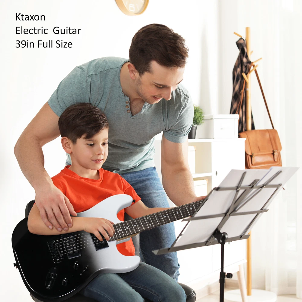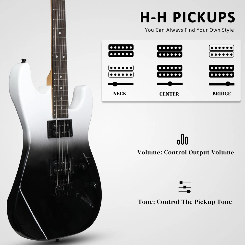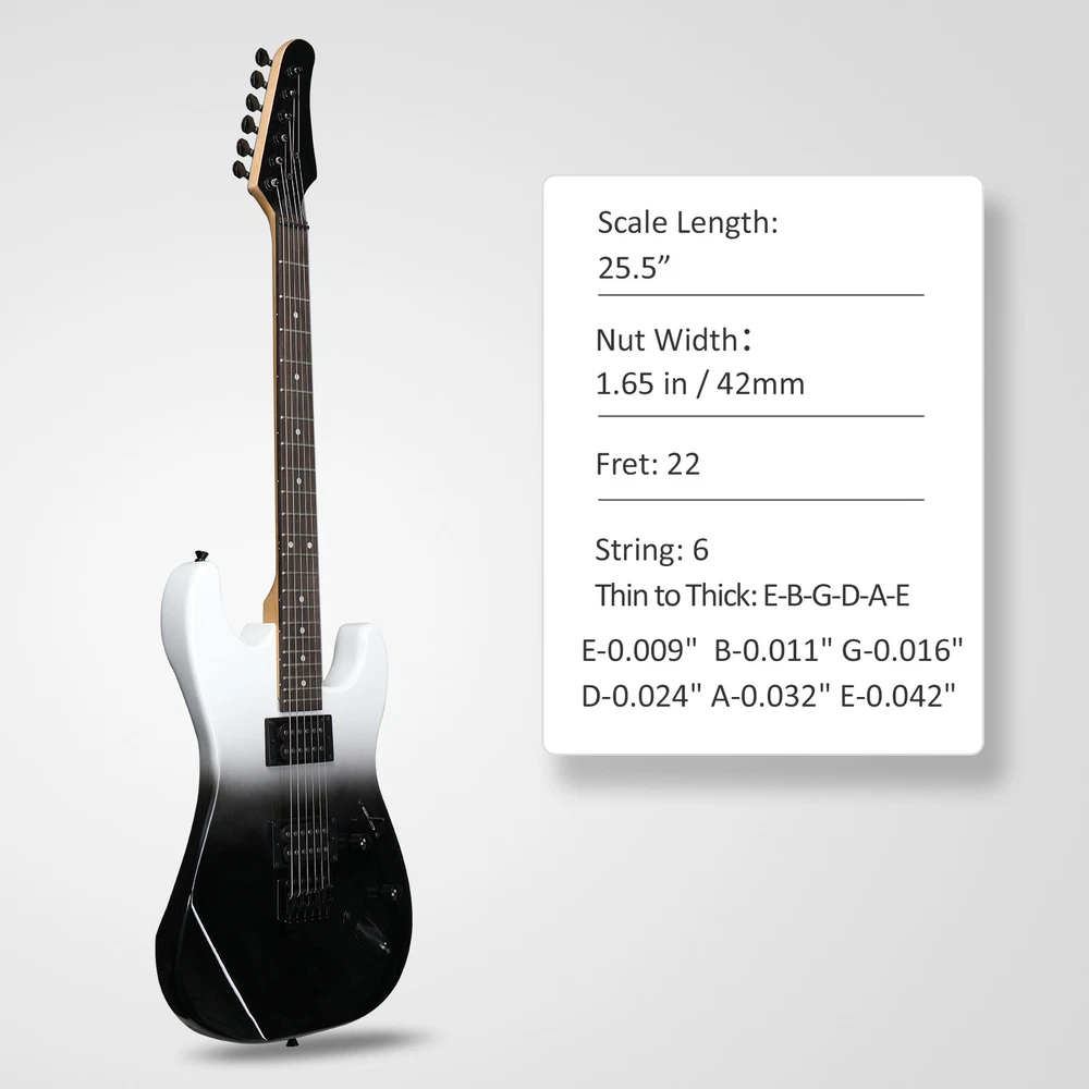 listing template Visit our store Sigh up for email Ktaxon KST 39" Full Size Electric Guitar Basswood 6 String With Bag Right Handed Introductions: The Ktaxon KST 39in electric guitar features a classic C-shaped maple neck and 22 nickel-bronze pins for a great audio experience with comfortable feel and standard tone. The H-H pickup, three-way switch, tone knob, and volume knob accommodate intense rock tones and a wide range of musical styles. Features: 1. H-H Pickup get a deeper, louder and smoother sound compared to cheaper single coil 2. Matte paint finish is extremely wear-resistant and scratch-resistant. 3. 3 pick up adjustment, 3 Way Switch;1 x Volume;1 x Tone 4. Tremolo Bridge System 5. The neck double adjustment: Two - way adjustable neck 6. Audio interface: 1/4" Jack, suitable for general audio 7. Complimentary: guitar bag, low noise guitar cable, shoulder strap, tremolo arm and pick,guitar capo Specifications: 1. Style: Electric Guitar 2. Brand: Ktaxon 3. Body: • Orientation: Right Handed • Body: Basswood • Color: White-Black 4. Neck and Fingerboard • Neck: Maple • Fingerboard: Rosewood • Strings: 6 • Frets: 22 • Nut width: 1.656 in. (42 mm) • Scale Length: 25.5" 5. Pickups & Hardware: • Pickups: Humbucker-Humbucker Pickup • Control: 3 Way Switch; 1 x Volume; 1 x Tone • Hardware: Tremolo • Jack: 1/4" 6. Dimensions • Guitar Dimensions: (38.8 x 12.6 x 1.6)" / (98.5 x 32 x 4.2)cm (L x W x H) • Gutiar Weight: 5.84 lbs/2.65 kg Package Includes: 1 x Electric Guitar 1 x Electric Guitar Bag 1 x Guitar Strap 1 x Tremolo Arm 1 x Low noise guitar cable 1 x Guitar capo 1 x Wrench Tool 1 x Plectrum You might like this more>> 6-Tier Bamboo Bookshelf Adjustable Storage Shelf Rack $49.99 Professional Cello 4/4 Full Size BassWood Set with Bag $148.99 Stainless Steel 4 Tier Steamer Cooker Steam Pot Kitchen Food $39.29 110 LB x 0.1oz All-In-One Digital Postal Shipping Scale 50kg $22.79 2Pack 10000LM LED Zoomable Flashlight Torch Lamp Light $9.99 Mini Exercise Bike Desk Pedal Bicycle $35.14 Shipping Policy 1. Ship worldwide from New Jersey by reliable shipping companies -- USPS, UPS, FEDEX, DHL, etc., and only to VERIFIED PAYPAL ADDRESS. Transport Delivery ETA. Package handling only takes 1 business day at our warehouse, so please make sure entering correct payment and shipping information before checking out. Once your payment is completed, we are not going to accept any more changes to your order. 2. International Buyers – Please Note: a. Import duties, taxes and charges are not included in the item price or shipping charges. These charges are the buyer's responsibility. b. Please check with your country's customs office to determine what these additional costs will be prior to bidding/buying. 3. Please check your shipping address carefully before checkout, it can't be changed if order completed. 4. Orders placed on weekend will be shipped within 2 days.Notification of shipment with tracking number will be sent to buyers. 5. Standard shipping: 2-7 business days Expedited Shipping: 2-3 business days One-day Shipping: 1 business day International shipping: Varies 6.Ship within 1 business day once payment completed. Notification of shipment with tracking No. will be sent to buyer. 7.We offer discounts for combine shipping. Please contact us first if you need combine shipping, and an invoice with discount will be sent to you. 8.Please allow 5 business days for delivery to US destinations on any eBay orders and 14 business days for delivery to any International destinations. We highly recommend our buyer choose priority/expess mail for international delivery which is much more stable. Return Policies 1. Refunds given only if item DOA and cannot be replaced via PAYPAL . If so, Please contact us with 5 days since you receive the item and and return to us within 30 days from the delivery date for exchange or refund. 2. If you need return, please contact our customer service representative, let us know the detailed problem and send us some pictures for confirmation. Payment Payment should be sent within 8(EIGHT) days of auction closing. Feedback If you are dissatisfied for any reason, please do not be quick to leave negative/neutral feedback. We work hard to make sure EVERY CUSTOMER 100% SATISFIED and resolve any problem for you. Work Time Work Time: Monday to Saturday About Us | Newsletter| Feedback| Contact Us Copyright © 2021 Yallstock. All rights reserved. 无标题文档 Ktaxon KST 39" Full Size Electric Guitar Basswood 6 String With Bag Right Handed Introductions: The Ktaxon KST 39in electric guitar features a classic C-shaped maple neck and 22 nickel-bronze pins for a great audio experience with comfortable feel and standard tone. The H-H pickup, three-way switch, tone knob, and volume knob accommodate intense rock tones and a wide range of musical styles. Features: 1. H-H Pickup get a deeper, louder and smoother sound compared to cheaper single coil 2. Matte paint finish is extremely wear-resistant and scratch-resistant. 3. 3 pick up adjustment, 3 Way Switch;1 x Volume;1 x Tone 4. Tremolo Bridge System 5. The neck double adjustment: Two - way adjustable neck 6. Audio interface: 1/4" Jack, suitable for general audio 7. Complimentary: guitar bag, low noise guitar cable, shoulder strap, tremolo arm and pick,guitar capo Specifications: 1. Style: Electric Guitar 2. Brand: Ktaxon 3. Body: • Orientation: Right Handed • Body: Basswood • Color: White-Black 4. Neck and Fingerboard • Neck: Maple • Fingerboard: Rosewood • Strings: 6 • Frets: 22 • Nut width: 1.656 in. (42 mm) • Scale Length: 25.5" 5. Pickups & Hardware: • Pickups: Humbucker-Humbucker Pickup • Control: 3 Way Switch; 1 x Volume; 1 x Tone • Hardware: Tremolo • Jack: 1/4" 6. Dimensions • Guitar Dimensions: (38.8 x 12.6 x 1.6)" / (98.5 x 32 x 4.2)cm (L x W x H) • Gutiar Weight: 5.84 lbs/2.65 kg Package Includes: 1 x Electric Guitar 1 x Electric Guitar Bag 1 x Guitar Strap 1 x Tremolo Arm