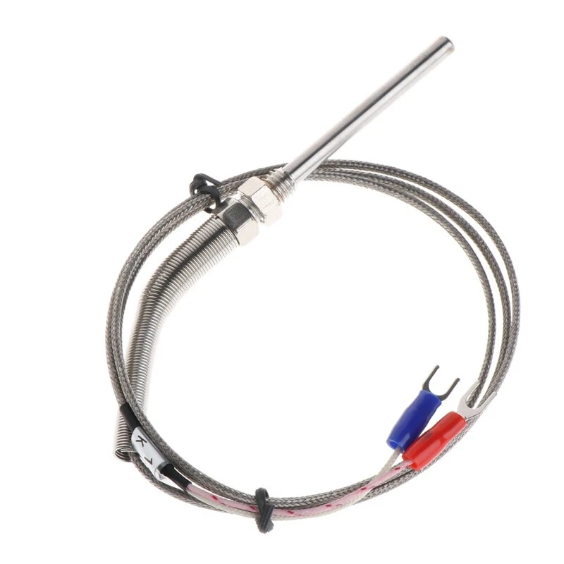 K-type Thermocouple Probe 5mm x 50mm 2Wire Thread Probe Temperature Detector Specifications: Type:K-type Temperature 0 500°C Thread Diameter: 8mm/ 0.31" Probe Diameter: 5mm/ 0.2" Fork Terminal Spacing: 4mm / 0.2" Probe Length: 50mm / 2" External Shielding Total Length: 1m/ 3.3Ft Description: 1. Features with 1meters long, 8mm thread diameter, 5cm probe length thermocouple. 2. A thermocouple is consisting of two different conductors (usually metal alloys) that produce a proportional to a temperature difference between either end of the of conductors. 3. type is more sensitive to temperature, can help to measure temperature fasterly. 4. K type Thermocouple with flexible spring built in. 5. 2 terminals for easy connection. Temperature measurement is from 0 to degree. 3. Widely used for industrial or laboratory to test equipments temperature. Package include: 1pc Thermocouple