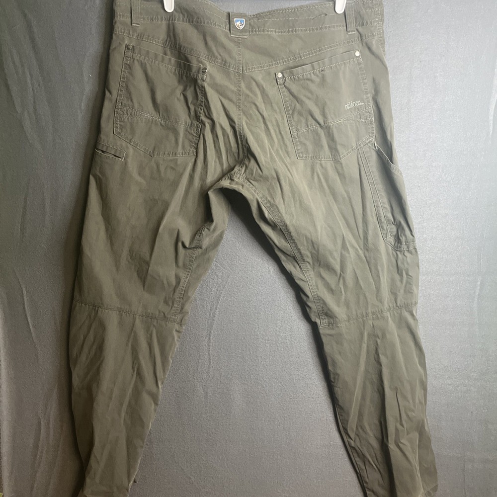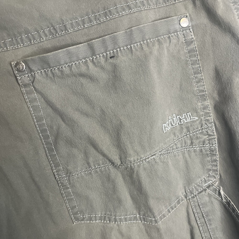Introducing the Kuhl Kanvus Jean Mens 40x32 Gray Vintage Patina Dye Canvas Pants, perfect for any occasion whether it be for travel, casual wear, or work. These pants feature a snap closure and a 5-pocket design with slash pockets for added convenience. The pants are made of a spandex, cotton, and cotton blend material, making them easy to care for and machine washable. With a mid-rise and straight leg style, these pants provide both comfort and style. The gray solid pattern and outdoor hiking theme make them a versatile addition to any wardrobe. The Kuhl Kanvus Jean Mens 40x32 Gray Vintage Patina Dye Canvas Pants are a classic fit and are suitable for any season.