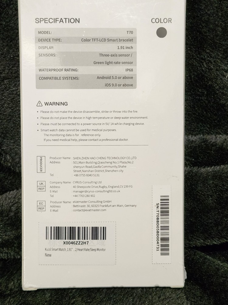 Experience the cutting-edge Kuizil BLACK Smart Watch, a seamless blend of style and functionality. Designed with a sleek 44mm black rubber case and band, this watch is compatible with both iOS and Android systems, providing you with the flexibility to monitor your activities and stay connected on the go. Equipped with 1 GB of storage capacity, the T70 model boasts Bluetooth connectivity and is unlocked for easy network access. Whether you're tracking your fitness goals or managing notifications, this smartwatch is an ideal companion for the modern lifestyle.