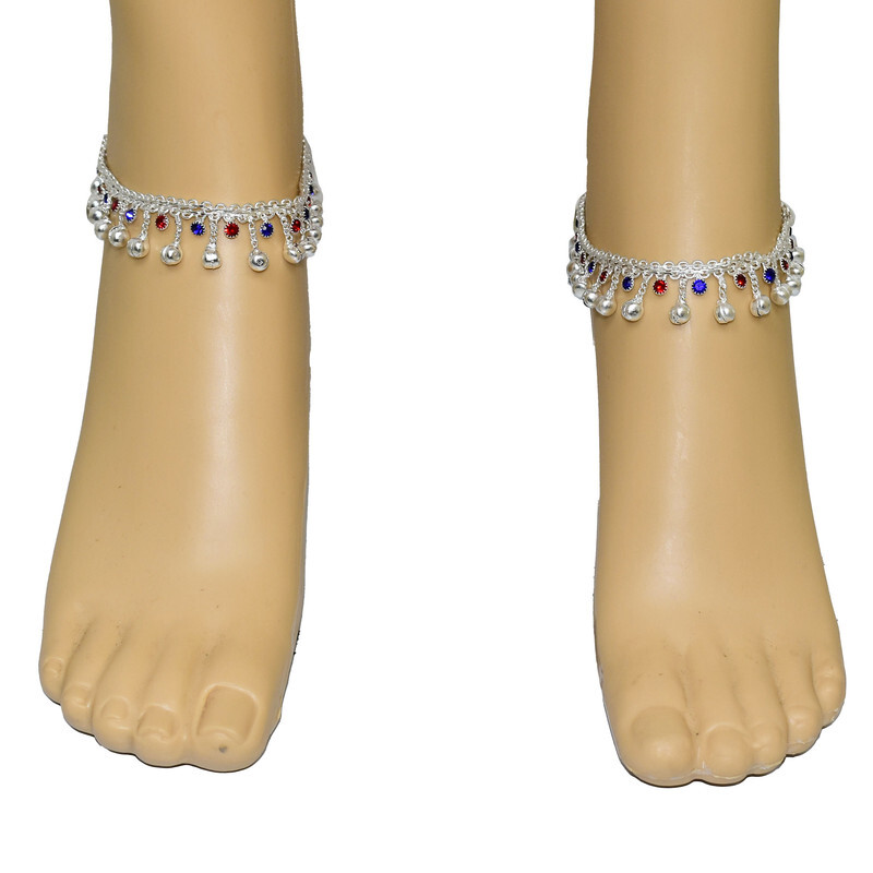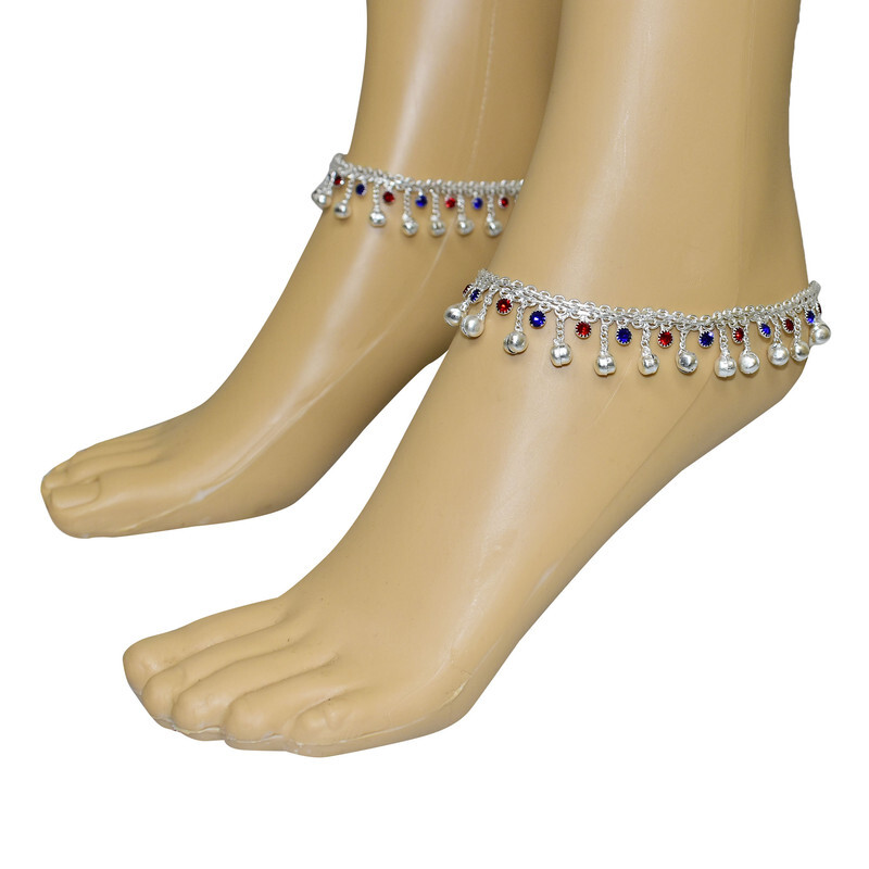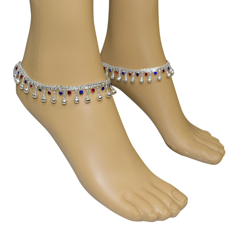 Women Ankle Anklets Payal Indian Bracelets Chain Pair Foot Jewellery Sale For:- 1 Pair Size:- Length:--25cm x Width:-1.5cm (Approx) Material:- Metal Color:- Silver&Red,Blue Closure:- Hook Type:- Anklets Main Stone:- Artificial Stones & Bell About This Item New Traditional Style Anklet For Women And Girls. High Quality Silver Plating,Long Lasting,Handcrafted,Embellished With Metal Bell Charm Chain Tassels. Ethnic Significance:- Brides Wear It To Draw Attention To And Decorate Their Feet Bells Or Chimes Make A Soft Sound When The Bride Walks Traditionally Payals Are Worn In Both Feet. Style Tip:- Perfect For Spring And Summer Wear.Compliments Most Outfits.Casual Chic Everyday Wear. Perfect traditional look. Any Ethnic Outfits Like.Saree,Lehenga,Gowns,Bridal Wear,Party,Festival,Any Special Occasion,Dance Or As Fashion Novelty Costume Accessories. Ideal For:- Christmas,Thanks Giving,New Year,Valentine,Birthday,Anniversary Or Any Occasion,Gift For Someone You Love Jewellery Care:- Can Be Used In Water But Dry Completely Before Storing. Note:-Buyers Will Be Responsible For Pay Their Country's Custom Duties Charge, Import Charges And Other Charges (If Applicable). Note - USA Buyers Do Not Pay any Extra Charge At The Time of Delivery. Note - USA Buyers Do Not Pay any Extra Charge At The Time of Delivery.