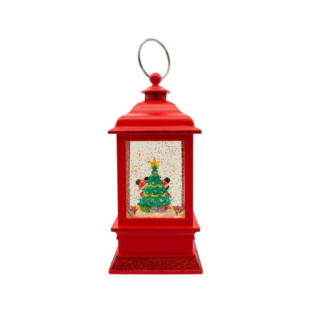 Kurt Adler Battery Operated Disney Mickey & Minnie Musical Light-Up Lantern, 9" PRODUCT DESCRIPTION This Mickey and Minnie lantern is sure to bring warm, nostalgic Disney magic into your holiday decor! Key Product Features Musical Decoration: When turned on, the lantern plays 8 Christmas songs: Jingle Bells, We Wish You a Merry Christmas, Silent Night, Deck the Halls, Joy to the World, The first Noel, Hark! The Herald Angels Sing & Oh Christmas Tree Dynamic Display: When turned on, an LED spotlight highlights the beautiful scene within and snow swirls dazzlingly around Mickey and Minnie Mouse Quality Craftsmanship: Made of plastic, water, and resin Battery-operated: Uses 3 "AA" batteries (not included) Free-Standing Ornament: Stands upright on a small table, ledge, or any other flat surface This 9-inch battery-operated musical Disney lantern from Kurt Adler is a fun and festive addition to any holiday décor. It features Mickey Mouse and Minnie Mouse standing in front of a decorated Christmas tree. Each are holding a music book and when activated, this lantern is illuminated with one warm white LED light and plays 8 different Christmas songs and the swirling glitter design gives the scene a snowy effect.