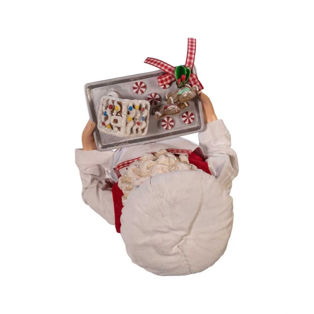 Kurt Adler Fabriché Gingerbread Chef Santa Standing Christmas Figurine, 10.5" PRODUCT DESCRIPTION Add some festively sweet Christmas vibes to your holiday decor with this Chef Santa from Kurt Adler! Key Product Features Great for Collectors: Part of the Kurt Adler Fabriché collection. Festive Baking Theme: Features Santa dressed as a holiday baker holding a gingerbread house with 2 adorable gingerbread people. High-Quality Craftsmanship: Made from fabric mache, PVC, and polyester for durability and fine detail. Display-Ready Size: Stands 10.5 inches tall, great as a seasonal centerpiece or collectible figurine. Holiday Décor Favorite: Perfect for kitchen counters, mantels, dessert tables, or festive gifting. Celebrate the baker in your life with this Kurt Adler Fabriché Gingerbread Chef Santa! This 11" Santa features Santa wearing an apron decorated with gingerbread men and chef's hat with a holly berry accent. Santa is carrying a tray of frosted gingerbread desserts.