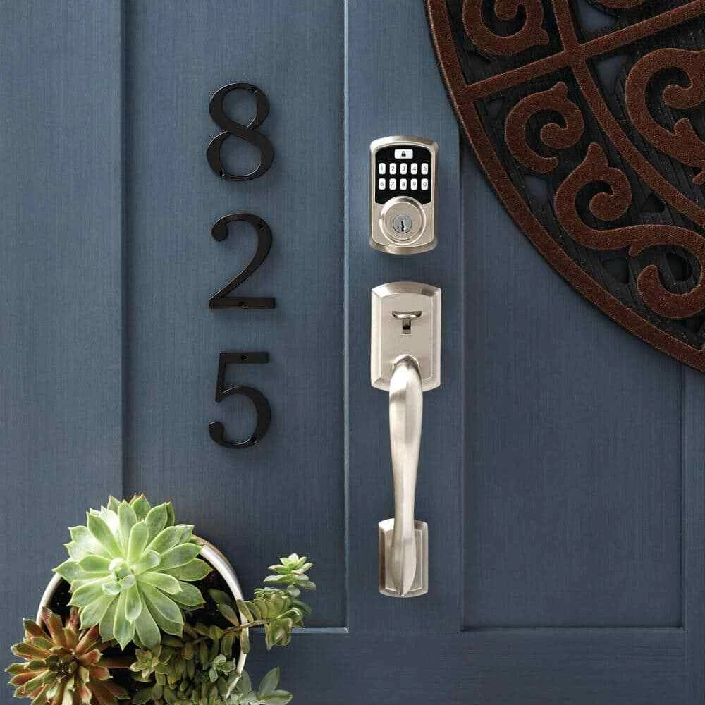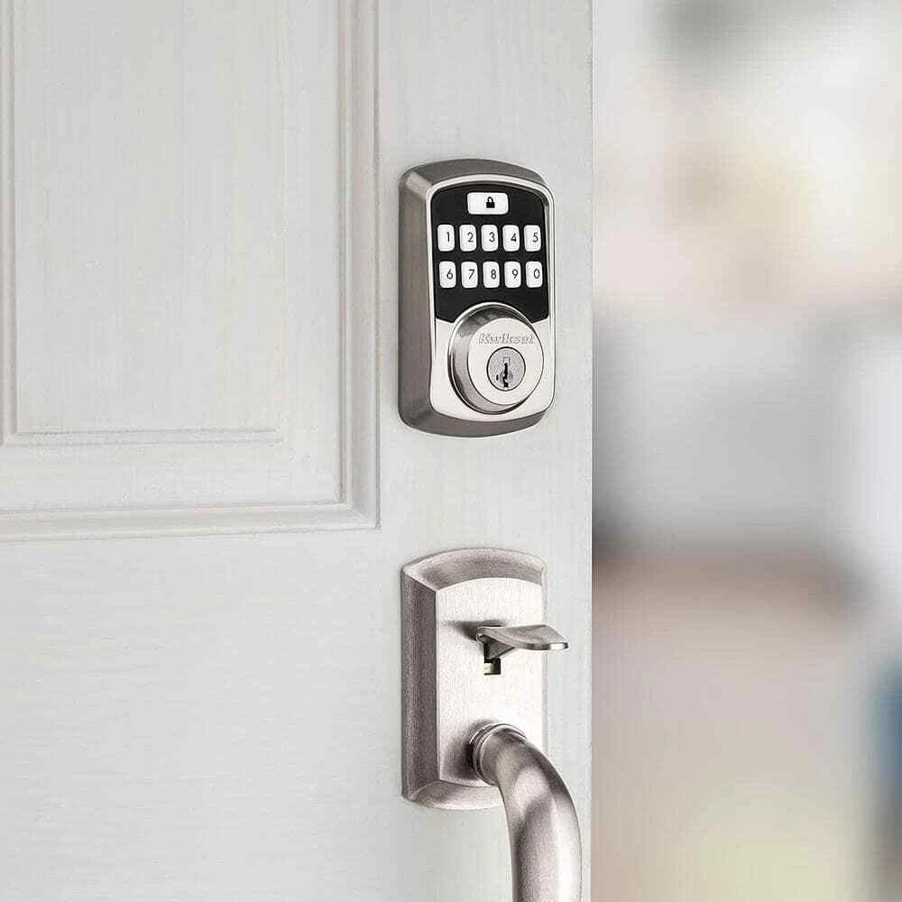 Aura Bluetooth Smart Lock is a keyless entry electronic deadbolt featuring SmartKey. Using the Kwikset App within Bluetooth range, you can lock/unlock the Aura Smart Lock and program up to 250 user access codes that can be scheduled and customized. The crisp, clean appearance of the Satin Nickel finish adds to the overall look of the product and brings a modern feel. Complete your entryway refresh with a matching Kwikset door lever or handleset. Highlights Control with your phone: use your phone to lock/unlock, share guest access, monitor activity at the door, and so much more while in Bluetooth range of the lock Share access with guests: Backlit touchscreen with support for up to 250 access codes. Use the Kwikset app to schedule access windows or share one-time codes with guests Monitor your home: view history log, receive activity notifications, and monitor user access while using the Kwikset app in Bluetooth range of the lock Track All Lock Activity: The Kwikset app's Lock Activity screen conveniently displays all of Aura's activity including actions such as locking, unlocking, low battery warning, manual key-based entries, and other alerts Auto-Lock Security: Set a duration for your door to lock automatically after entry or exit, perfect for keeping your hands free and getting in and out in a hurry Easy Install: Do it yourself, installs in minutes with just a screwdriver, fits doors between 1-3/8 in. and 1-3/4 in. thick Product Warranty: Locks and handles have a lifetime mechanical and finish warranty, and a 1 year electronics warranty; see Kwikset warranty for full details Requires 4 AA batteries, included Easily installs in minutes with just a screwdriver