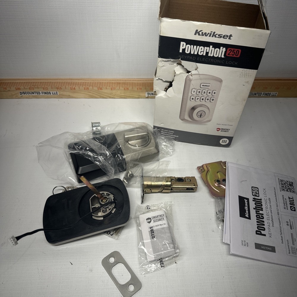 Finish: Satin Model: Kwikset Powerbolt 250 Items Included: Hardware, Instructions, Key Style: Contemporary Number in Pack: 1 UPC: 883351891448 Throw Length: 1 in Item Height: 4.59 in Brand: Kwikset Material: Nickel Suitable For: Front Door, Front Entrance Door, Residential, Side Entrance Door/Backdoor ANSI Grade: ANSI Grade 3 (Good) Features: Adjustable Backset, Easy to Install, Electronic, Simultaneous Locking, With Key gtin13: 883351891448 Type: Deadbolt Color: Silver Item Width: 2.81 in Door Handing: Universal/Reversible Item Depth: 0.96 in Mounting: Universal Item Weight: 2 lb