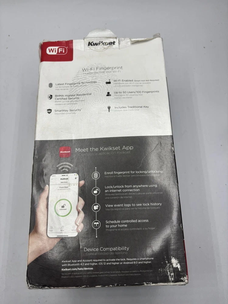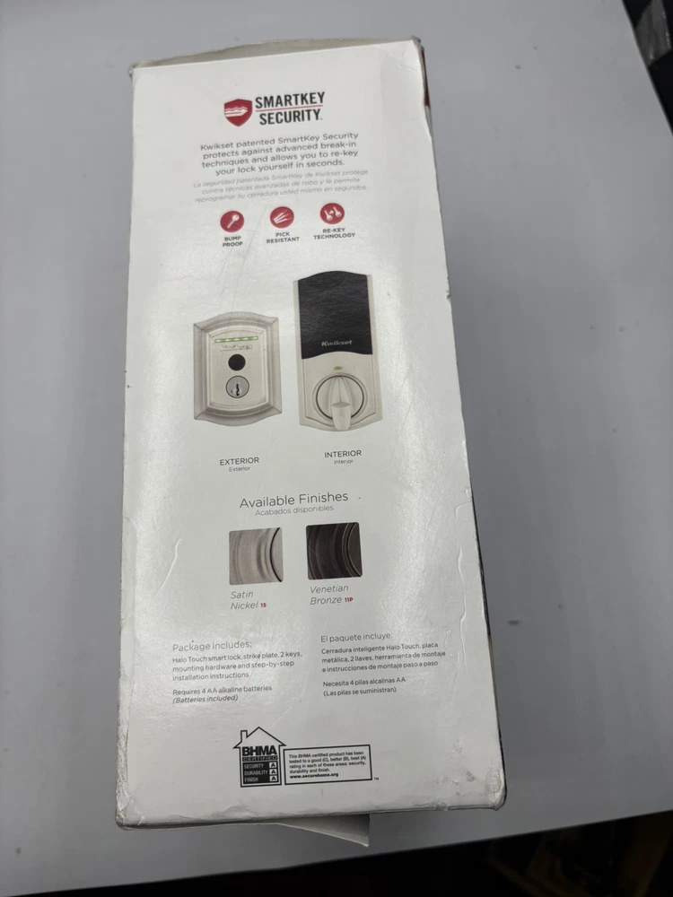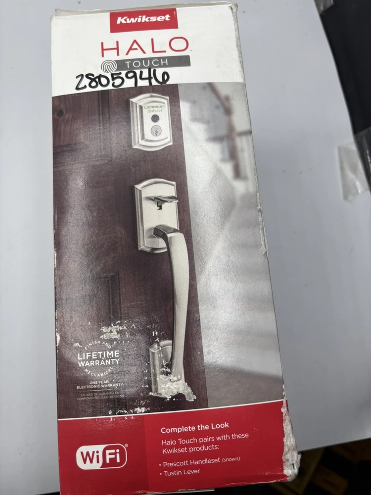 The Kwikset Halo Touch 99390-001 is a Satin Nickel Combination Keypad Smart Lock that includes a Deadbolt. It operates via Wi-Fi and features a touchscreen for easy access. The smart lock can be controlled through an app and uses AA batteries.