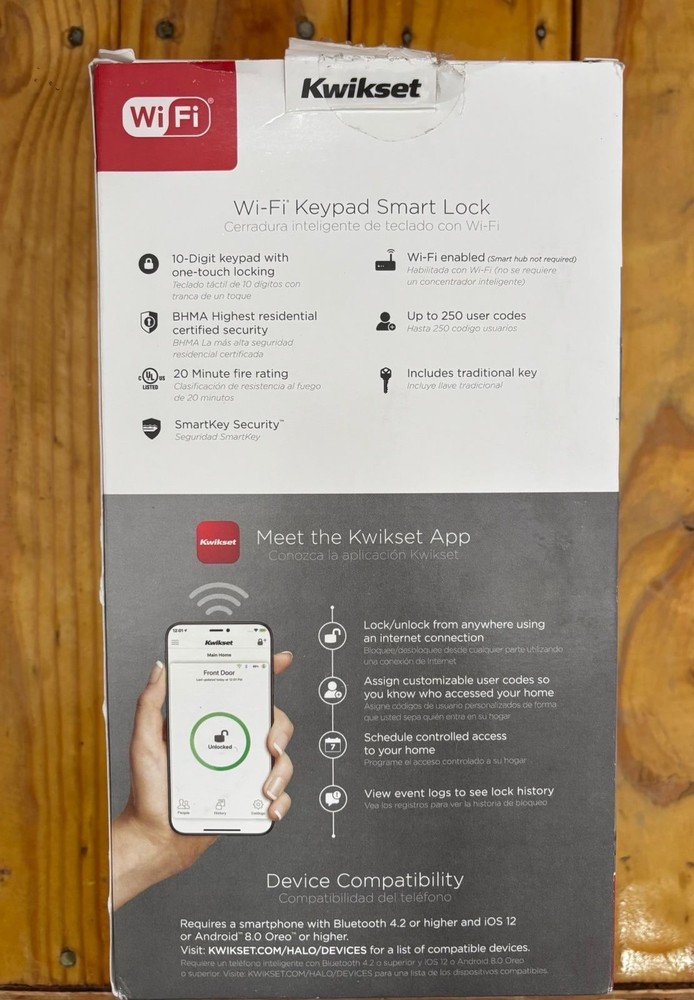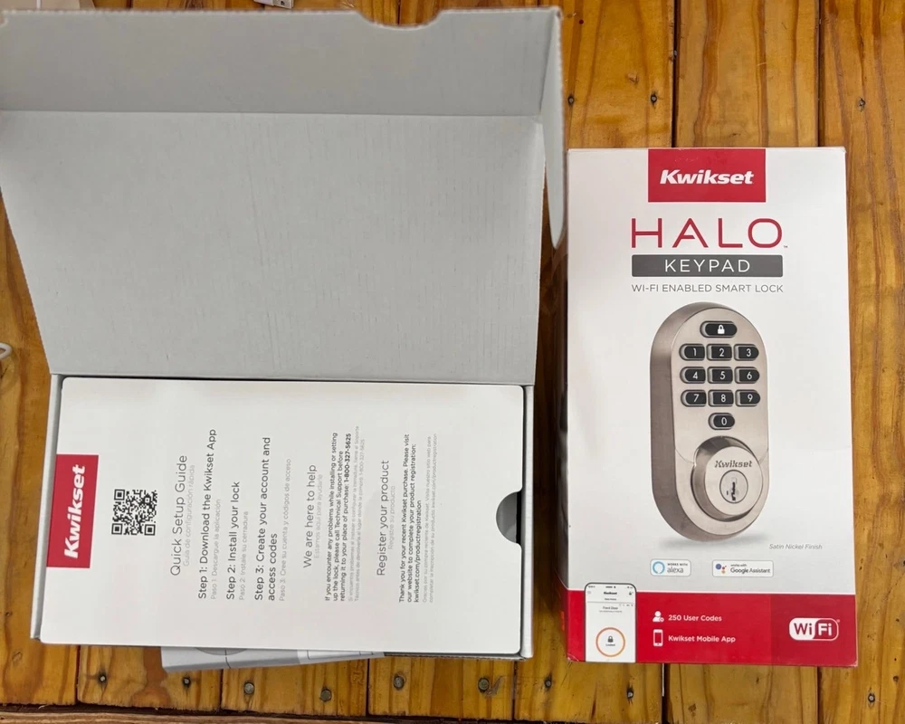 NEW- OPEN BOX The Kwikset Halo Wi-Fi Smart Lock is a keyless entry door deadbolt that offers convenient and secure access to your home. With its contemporary design and sleek satin finish, this smart lock is both stylish and functional. It features smart home compatibility with Alexa, HomeKit, and other platforms, allowing you to control your door remotely and automatically. The lock requires AA batteries for operation and can be easily installed on standard rectangular doors. The Kwikset Halo Wi-Fi Smart Lock is a smart choice for enhancing the security and convenience of your home.
