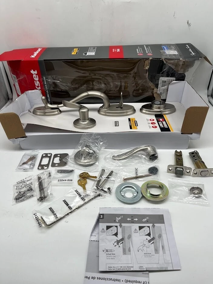 The item is new, unused. Listed as open box due to the fact there is some packaging distress. Enhance your home’s entrance with the Kwikset Shelburne Single Cylinder Handle Set , a perfect blend of traditional elegance and superior security . The satin nickel finish adds a modern touch, making it a stylish fit for various home designs. Designed for convenience and security , this handle set features SmartKey Security technology, allowing you to re-key your lock in seconds . Whether you need to update access control after moving or replacing lost keys, this feature provides quick and secure customization . Additionally, BumpGuard protection defends against lock bumping for enhanced home security . Key Features SmartKey Security: Protects against advanced break-in techniques and allows for easy re-keying in just three steps. Microban Protection: Keeps door hardware 99.9% cleaner than unprotected surfaces. Universal Handing: Fully reversible to fit both right-handed and left-handed doors . Enhanced Protection: Single-cylinder deadbolt operates with a key outside and a thumb turn inside . Adjustable Fit: Designed for standard 1-3/4 in. door thickness . Durable & Stylish Finish: Satin nickel adds a contemporary and elegant look . ANSI/BHMA Certified Security: Provides reliable residential protection . Easy Installation: Installs in minutes with just a screwdriver . Includes Two Keys for immediate use. The Kwikset Shelburne Handle Set offers trusted security, timeless style, and practical features , making it an excellent choice for upgrading your home’s front door with both beauty and peace of mind . We take great care to inspect all items and ensure they are accurately described. Should you have any issues with your purchase, please let us know immediately. We are committed to resolving any concerns promptly and to your satisfaction. Our small business truly appreciates your patronage.