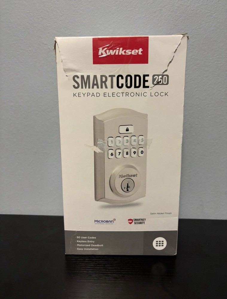 Finish:SatinColor:SilverFeatures:Electronic, Bump Proof, Pick Resistant, Re-Key Technology, BHMA Grade 2 Certified, SmartKey Security, Up to 50 User Codes and 10 one time user codes, Auto Locking after 3 seconds, Easy Installation and fits all standard doors, Includes keyType:LockMPN:992600-002gtin13:883351859479Number in Pack:1UPC:883351859479Material:NickelModel:SmartCode 260Suitable For:Front Door, Front Entrance Door, ResidentialBrand:Kwikset