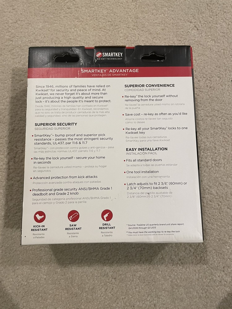 Secure your front door with the Kwikset SmartCode 916 Electronic Deadbolt. This traditional-style lock features Satin Nickel finish and suits any front door. The lock is made of durable Metal and Plastic materials and comes with a weight of 3.39 lbs. The Kwikset SmartCode 916 Electronic Deadbolt comes with instructions and features SmartKey Re-Key Technology. This lock is suitable for anyone looking for added security for their home.