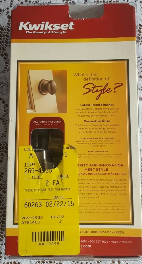 Model: KWIKSET SIGNATURE SERIES Color: BRONZE Door Handing: Universal/Reversible Suitable For: Bathroom Door, Interior/Room Door, Residential Mounting: Universal MPN: PART NO. 730CN11PCP Material: Bronze, DIY REMODEL HOME REPAIR, CONSTRUCTION CONTRACTOR SUPPLIES BUILDING MATERIAL, SIGNATURE SERIES CAMERON, BED AND BATH, "GUARANTEED FIT", LOCKING DOOR KNOB  FOR PRIVACY, LIFETIME WARRANTY ANTI-TARNISH & MECHANICAL, ANSI 2 GRADE Manufacturer Warranty: Lifetime Brand: Kwikset Type: Barrel Lock