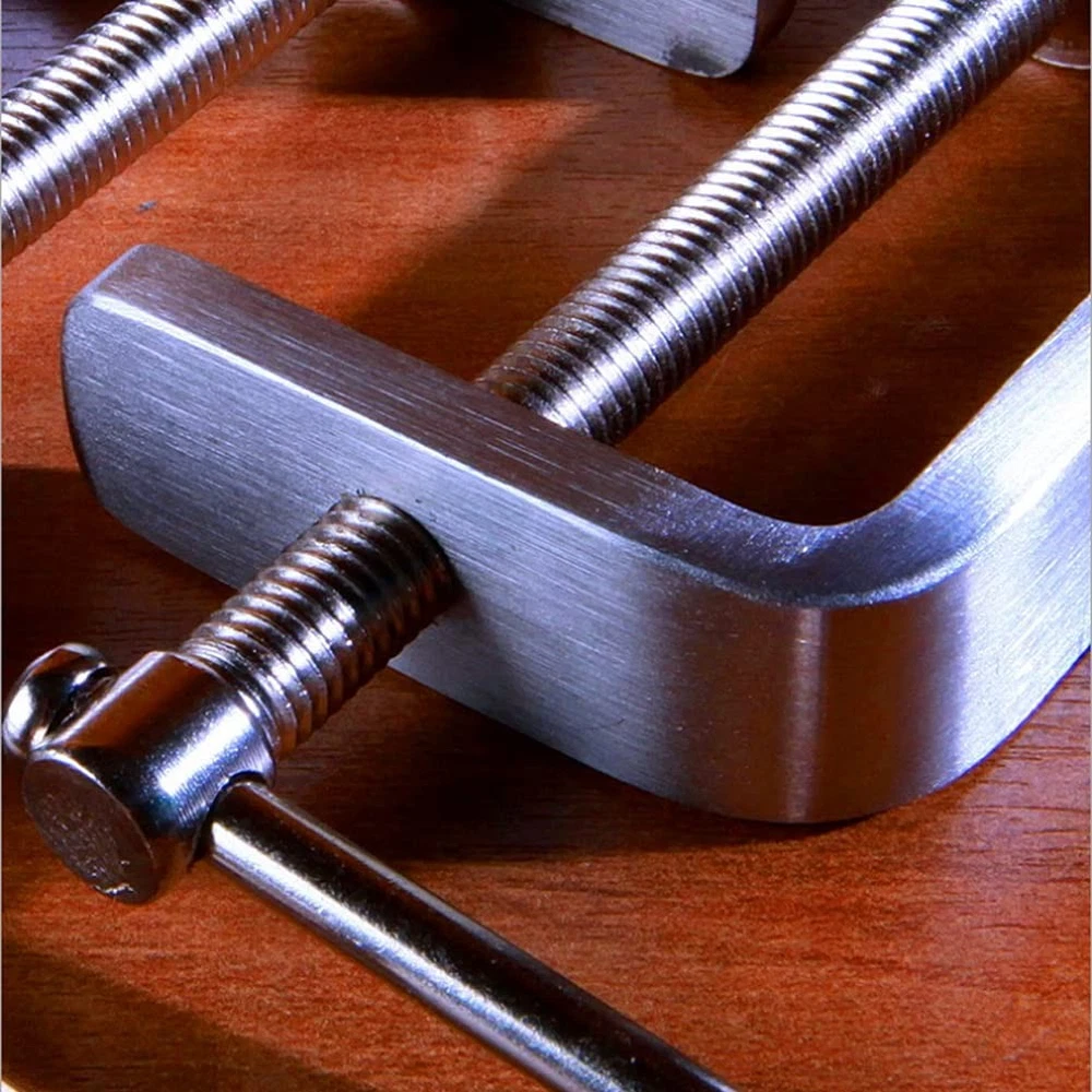 △Material: 304 Stainless Steel. △Size: Length 84mm / 3.3 inches, upper width 56mm / 2.2 inches, lower width 45mm / 1.7 inches, maximum clamping length 72mm / 2.8in. △Our screw clamps for woodworking and welding provide a secure hold when you need it most; You want your woodworking tools and accessories to be simple, reliable, and powerful, and our C Clamps fit the bill. △Use: This C-clamp designed for woodworkers, carpenters, welders, builders,or do-it-yourselfers.Suitable for general clamping needs. △Pretty Design: This C-clamp is made of heavy-duty Cast malleable steel frame with I-beam design provides sure strength.The heavy designed clamp can ensure that clamped object will not deform easily.