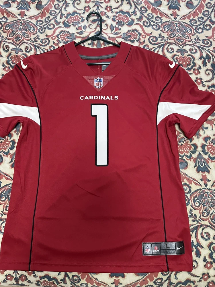 Product:JerseyTeam:Arizona CardinalsGender:MenBrand:NikeLeague:National Football League (NFL)Size:LColor:MaroonPlayer:Kyler MurraySport:FootballPre & Post Season:Regular SeasonOfficially Licensed:Yes