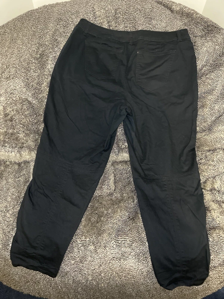 Elevate your wardrobe with these stylish Lane Bryant canvas pants. These black pants feature a zip and button closure, with accents like a logo and a straight leg style. Perfect for any occasion, from travel to workwear, these pants are made with a lightweight and breathable fabric that is easy to care for. With a regular fit and mid-rise, these pants are designed for comfort and have pockets for added convenience. The versatile design allows for personalization, making them a great addition to any outfit. These pants are perfect for any season and are machine washable.