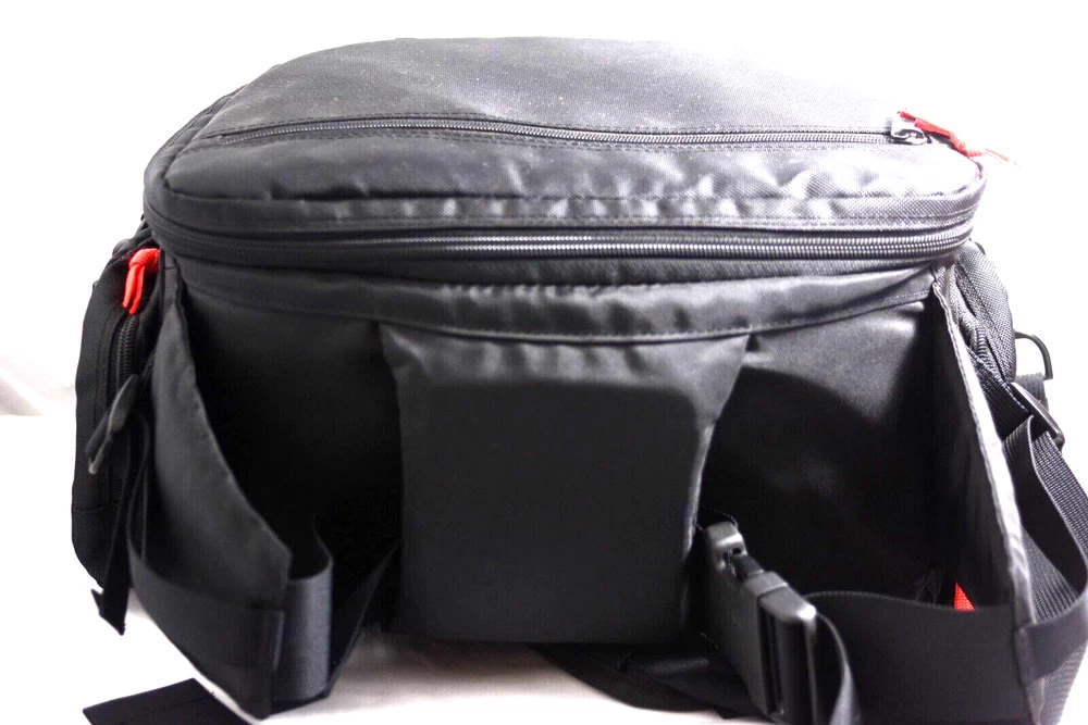 PHOTOFLEX PERFORMANCE SERIES CAMERA BAG THIS IS A VERY NICE LOOKING (EXCELLENT) PHOTOFLEX PERFORMANCE SERIES BLACK SHOULDER STRAP AND FANNY PACK CAMERA BAG. BAG ALSO HAS 2 SIDE POCKETS, FRONT POCKET, TOP ZIPPERED COMPARTMENT AND INSIDE ZIPPERED COMPARTMENT FOR EXTRA STORAGE. INSIDE MEASURES AROUND 8 X 11 X 6 INCHES DEEP. COMES WITH SHOULDER STRAP, DIVIDERS AND FANNY STRAP.