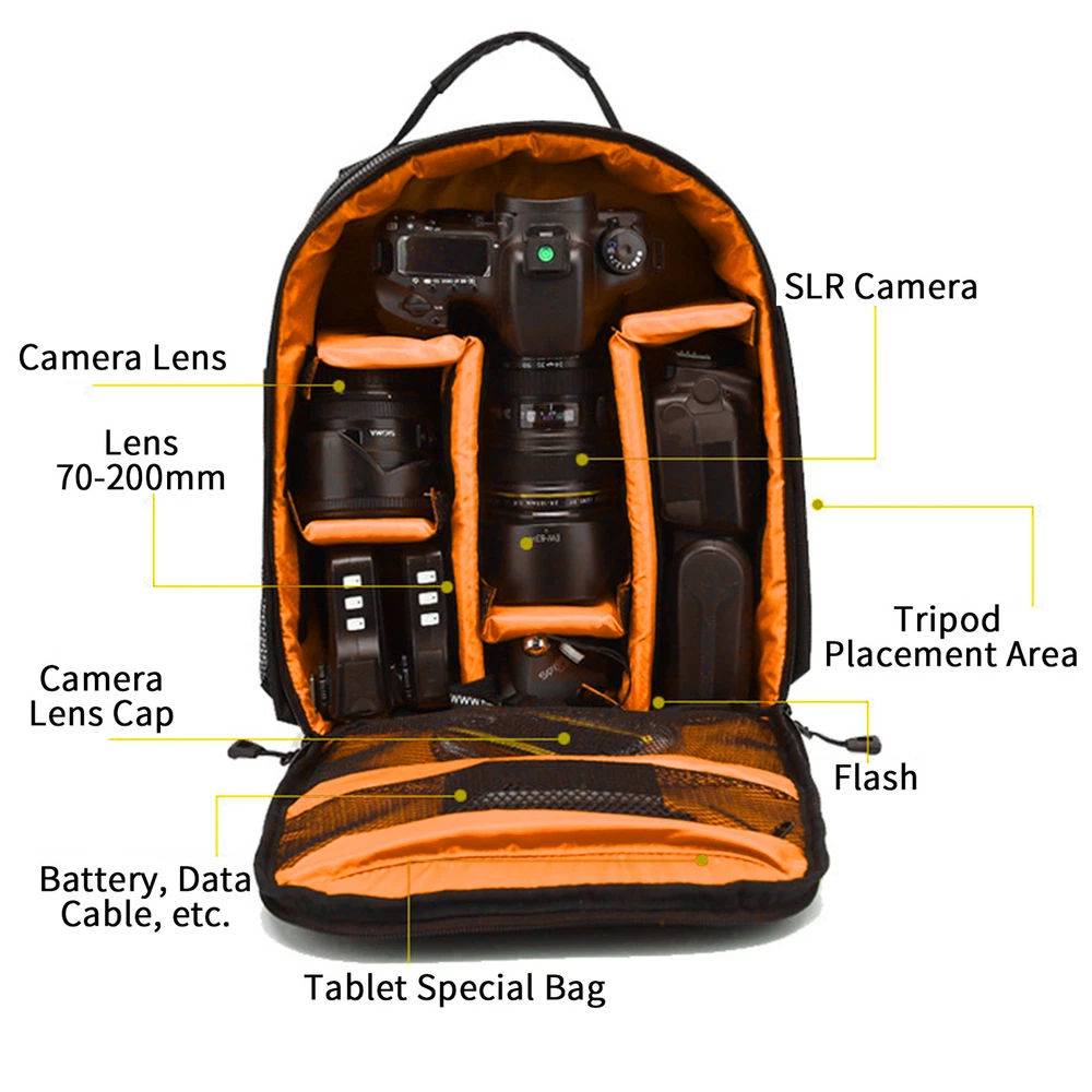Type: Camera Backpack MPN: Does Not Apply gtin13: Does not apply Item Weight: 0.36 kg UPC: Does not apply Item Height: 10.0 cm Material: waterproof nylon Item Width: 27.0 cm Item Length: 33.0 cm Brand: Unbranded