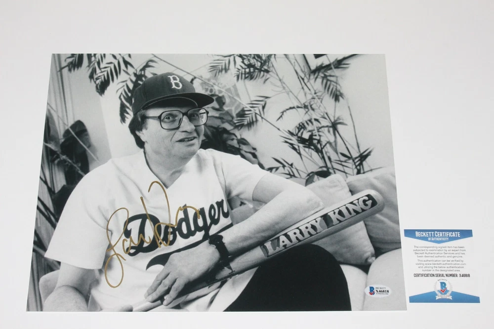 You are looking at a professionally printed 11x14 inch photo autographed by Larry King! It is signed boldly in permanent sharpie, so you don't have to worry about the autograph fading. This autograph includes a Certificate of Authenticity from Beckett Authentication Services (BAS), including a matching tamper proof sticker with a unique serial number documented in their online database. This certification guarantees the item authentic for life, making it a great addition to any collection or a wise investment for the future! Shipping will be $8 for USPS Mail with Delivery Confirmation within the United States. We accept Paypal for payment. Payment must be received within 7 days of purchase. Please feel free to message us with any questions about the item, where the signature was obtained, or other items for sale. Please check out my eBay store for many more great items, and thanks for looking.