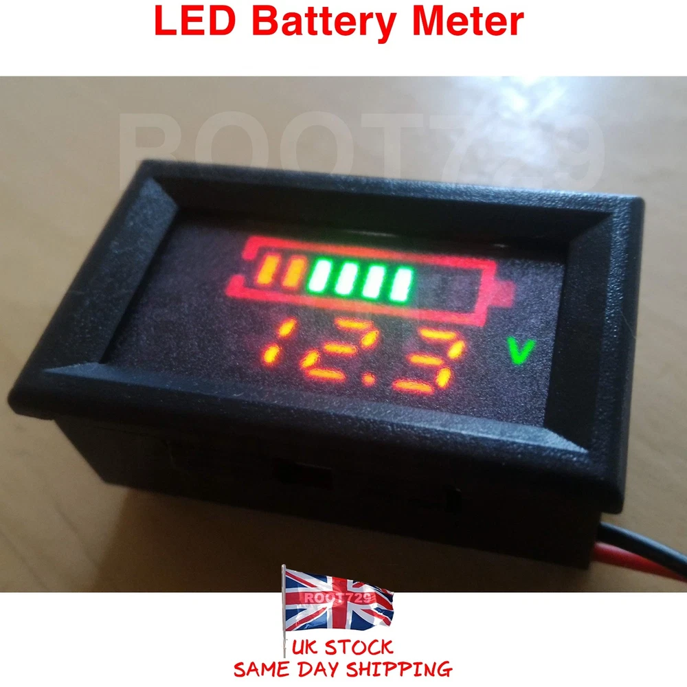 LED Battery Capacity Indicator Tester 12V Digital Voltmeter Description: 1. Working current:5-15mA(The lower the battery voltage and current smaller) 2. Eight electricity Resolution:10% 25% 40% 50% 60% 75% 90% 100% 3. Voltmeter accuracy:98% 4. Working temperature: -10 ~ +65centigrade 5. Operating Humidity: 10 ~ 80% 6. Dimensions: 48*29*21 mm Indicator: Battery voltage is greater than 11.1V, 1 led indicator is lit. Battery voltage is greater than 11.3V, 2 led indicator is lit. Battery voltage is greater than 11.6V, 3 led indicator is lit. Battery voltage is greater than 11.9V, 4 led indicator is lit. Battery voltage is greater than 12.2V, 5 led indicator is lit. Battery voltage is greater than 12.5V, 6 led indicator is lit. Battery voltage is greater than 12.9V, 7 led indicator is lit. Battery voltage is greater than 13.3V, 8 led indicator is lit. Be aware of other sellers selling from the UK but who are actually based in China, any problems and you will find you have to pay for returns to china . . always check the business seller information to confirm. Feel free to contact us any time. UK stock, Same day dispatch when payment is received by 3pm. (working days) Free UK 2nd class shipping, 1st class available for just £0.30p. Thank you for looking please contact me with any questions about this item or suggestions for UK stock etc. Please see my other items - HERE