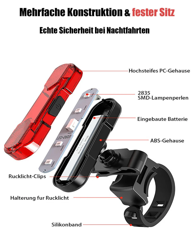 LED Bicycle Cycling Tail Light USB Rechargeable Bike Rear Warning Light 6 Modes