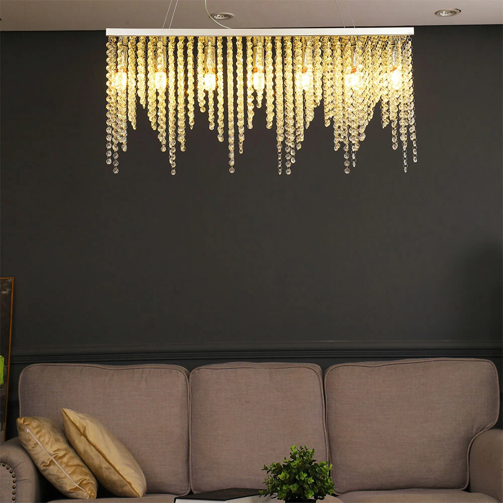 Description: Rain drop collection, sparkles from every angle. Full Assembly Required with time and effort. Feature: Material: Polished chrome stainless steel canopy and frame, top K9 clear crystal Dimension: Length 32" (80cm), Width 8" (20cm), Height 16" (40cm). Pendant wire: adjustable 59"(150cm) Light Source:E12 x 7 Bulbs Required (Max 40W each, NOT included). Works with incandescent, LED, CFL, halogen or color changing bulbs up to 40W. Fully dimmable when used with dimmable bulbs and a compatible dimmer switch (not included). Application: Ideal for living room, dining room, kitchen island, bedroom, foyer, indoor, farmhouse, sloped ceiling, bar, restaurants, galleries, exhibition room, hotel, coffee shop, office. LED Chandelier Living Room Fan Lamp Retractable Crystal Ceiling Fan Light Decor Product Details: Product Name: 42" Dimmable Ceiling Fan Light with Pendant 【Remote Control】Integrating turn on light with 3 color changes (white, warm white, neutral white)you can use the remote control to choose the color you like. 【Crystal desige】 the 3-layer body is all decorated with K9 crystal and absolutely stunning when the light is on. A raindrop crystal pendant hangs from the bottom of the fan and makes your room full of luxury. 【Ceiling Fan】With ABS blades, It can be used as an electric fan, and it can also be used for lighting 【Applications】Ideal for living room, dining room, foyer, villa, bedroom, restaurant, study room, and other places to decorate lighting fixtures. 【Customer Service】If you have any issues, inquiries or need assistance, please feel free to contact us, we will try our best to help you. Style: Modern Type: Ceiling Fan Chandelier Light Source: Led Lighting Board(Include) Switch: remote control 3 fan speed: 1-3 Light color:3 regular colors change by remote Timing function:1/3/6 hours Voltage:110V FIT YOUR COUNTRY Wattage:36w Applications:8-25㎡,Living Room, Ding Room,Bedroom, Study Room, Corridors, Foyer, Kitchen, Restaurant, bar, coffee shops etc Dimension: Diameter:42in /107cm(blades open) Long Downrod Length: 7.8" (20 cm) Short Downrod Length: 3.9" (10 cm) Total Height: 17.7" (45cm)/ 21.6" (55cm)You can choose a suitable rod length according to your needs Lampshade:Acrylic+crystal Blades: Acrylic Electronic materials: Steel+ copper wire Material: High quality Acrylic lampshade, Plating metal Warm Tips: This fan needs basic assembly, professional would be highly recommended. Floor height is greater than 110", ceiling load is greater than 25kg. Product Name: Crystal Ceiling Fans with light Style: Modern Crystal LED color: 3 color(white,warm white,neutral white ) Light Source: LED lighting (Included) Color: clear crystal,chrome Material: Metal+clear crystal+ABS fan Shade Material:K9 Crystal with high transparent PVC (plastic) lampshade Blade Material: Transparent acrylic Number of Blades: 4 Switch: Remote control Dimensions: Diameter 42" , height 22 " Voltage: AC 110V Average Service Life: 5~10 Years Applicable: Living Room, Dining Room, Foyer, Villa, Bedroom, Restaurant, Study Room , 10-25 Square meter Package: 1 light Note: Floor height is greater than 110 inches, ceiling load greater than 20kg. K9 Crystal Rectangular Pendant Description: Rain drop collection, sparkles from every angle. Full Assembly Required with time and effort. Feature: Material : Polished chrome stainless steel canopy and frame, top K9 clear crystal Dimension : Length 32" (80cm), Width 8" (20cm), Height 16" (40cm). Pendant wire: adjustable 59"(150cm) Light Source : E12 x 7 Bulbs Required (Max 40W each, NOT included) . Works with incandescent, LED, CFL, halogen or color changing bulbs up to 40W. Fully dimmable when used with dimmable bulbs and a compatible dimmer switch ( not included) . Application: Ideal for living room, dining room, kitchen island, bedroom, foyer, indoor, farmhouse, sloped ceiling, bar, restaurants, galleries, exhibition room, hotel, coffee shop, office. 8 Light Wooden Chandelier This is a lamp with retro-industrial characteristics. Made of high-quality iron process, original and elegant, with a strong retro atmosphere, suitable for different places. You can decorate it in restaurants, cafes and bars. Specification: Material:iron,wood Height:100cm length: 68cm Lamp holder: E27 Input Voltage: 110-120V Irradiation area: 10-25m² Features: 1. Simple lines, rust-colored lamp, retro and versatile, bring new visual experience to family decoration. 2. Refined Iron Art: High-quality baking paint metal, high strength, corrosion resistance, not easy to rust. 3. Adjustable chain: effectively reduce the pressure of droplight, safer. Package Included: 1 x Large Iron Light (Bulb is Not Included) Note: Please allow 1-3CM differs due to manual measurement. Due to the different display and different light, the picture may not reflect the actual color of the item. Thanks for your understanding. Payment Delivery details Terms of sales About us Contact us Payment We accept ebay payment 。 Fees such as import duties, taxes are not included in the item price or shipping costs. These charges are the buyer's responsibility. Delivery details Shipping: 2-9 working days to: USA Terms of sales We maintain high standards of excellence and strive for hundred percent customer satisfaction. Feedback is very important to us. We hope that you contact us immediately before you give neutral or negative feedback, so that we can address your concerns. It is impossible to address issues if we do not know about them! About us Your satis faction is our ultimate goal. We work hard to earn your trust and future business. Our certified technicians have tested each item before shipping. The unit comes with 1 year limited warranty on all manufacturing defects. a) If you receive a defective item, you may return it or ask for a discount. Please contact us within 14 days after you receive the package. b) What you returned must be intact and in its original packaging as re? u. Customer is responsible for shi