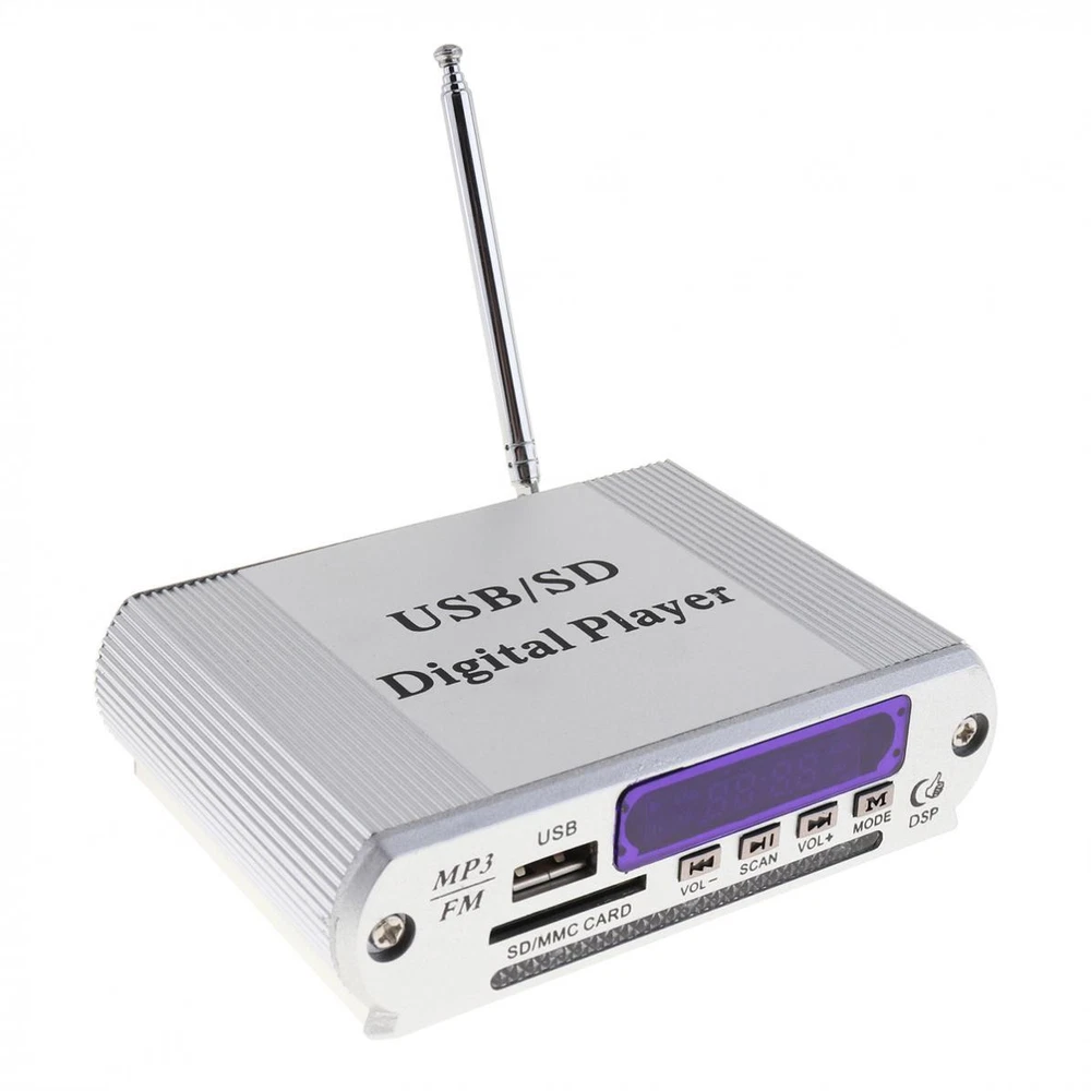 Description Item Description: Package Including: Package Including: 1 x LED Display 1 x Remote Control Frequency Response: 20Hz - 20KHz Impedance: 4 - 8Ω Out Power: Dose not apply Number of Channels: 2 Audio Sensitivity: 0.25mv-50mv Material Type: Aluminum Alloy Frequency Range (Hz): 87.5MHz - 108.0MHz Signal To Noise Ratio: Dose not apply Display: Dazzle color electricity LED level display Format: MP3 / FM MP3 In Memory Type: USB / SD Support: USB / SD / MMC card Color: Silver Controls and Buttons: - 4-Electronic keypad control - Power on/off control - Mode button - Vol+ / Forward button - Vol- / Backward button - Play / SCAN button - Power off / on Features: - Comes with USB port, support mp3 music play from U disk. - Dazzle color electricity LED level display. - 4-Electronic keypad control makes performance easier. - Support mp3 music play from SD / MMC card. - It supports FM radio play(FM: 87 ~ 108MHz), and can store station under FM mode. - It is two channel output. - Sound mode digital display. - Revolutionary amplifier technology, ultra compact design, light weight. - Remote control make your performance more convenient in a long distance. Place of Application: Car/ Motorcycle Product Weight: 170 G / 6.00 Ounces Product Dimensions (L*W*H): 17.0*13.5*3.5 CM / 6.69*5.31*1.38 Inches Package Weight: 185.0 G / 6.53 Ounces Package Dimensions (L*W*H): 17.0*13.5*3.5 CM / 6.69*5.31*1.38 Inches Retail Packaging: Yes, Blister Packaging Payment 1. When put the order in the awaiting payment,Payment must be paied within 20days. 2. We accept payment by Paypal 3.Please write down your special requests (color, size, etc.) in the NOTE when you make payment. 4.TOTAL AMOUNT includes the final price plus S&H(Shipping and Handling). Shipping 1. We only ship to eBay confirmed address 2. Item will be shipped within 48 hours after payment received, excluding weekends and holidays. 3. Most orders are delivered within the stated shipping time at the time of purchase 4. Shipping are not available for PO BOX, Parcel locker, Parcel collect 5. If you don't receive your shipment within 35 days after payment, please feel free to contact us. We will take proper actions to solve the problem for you Retrun 1.notify us by message before returning 2.Contact us within 30 days of receiving the item