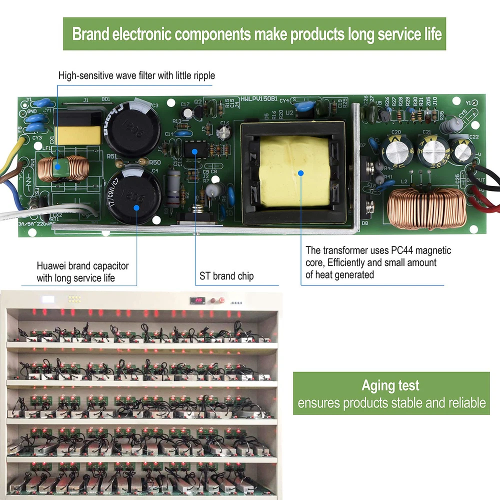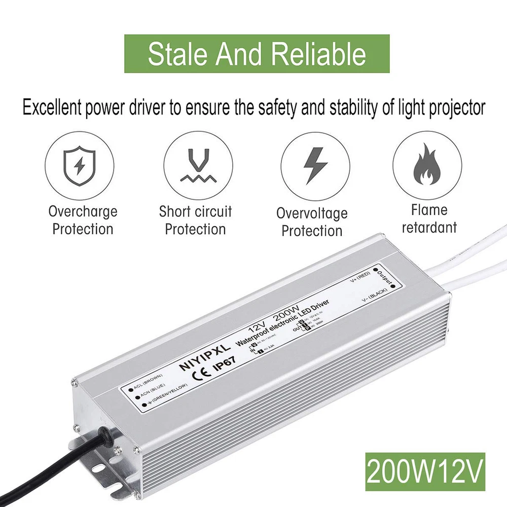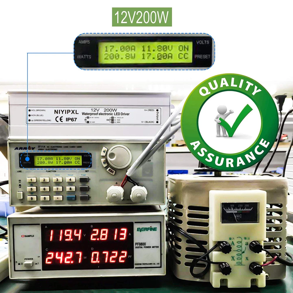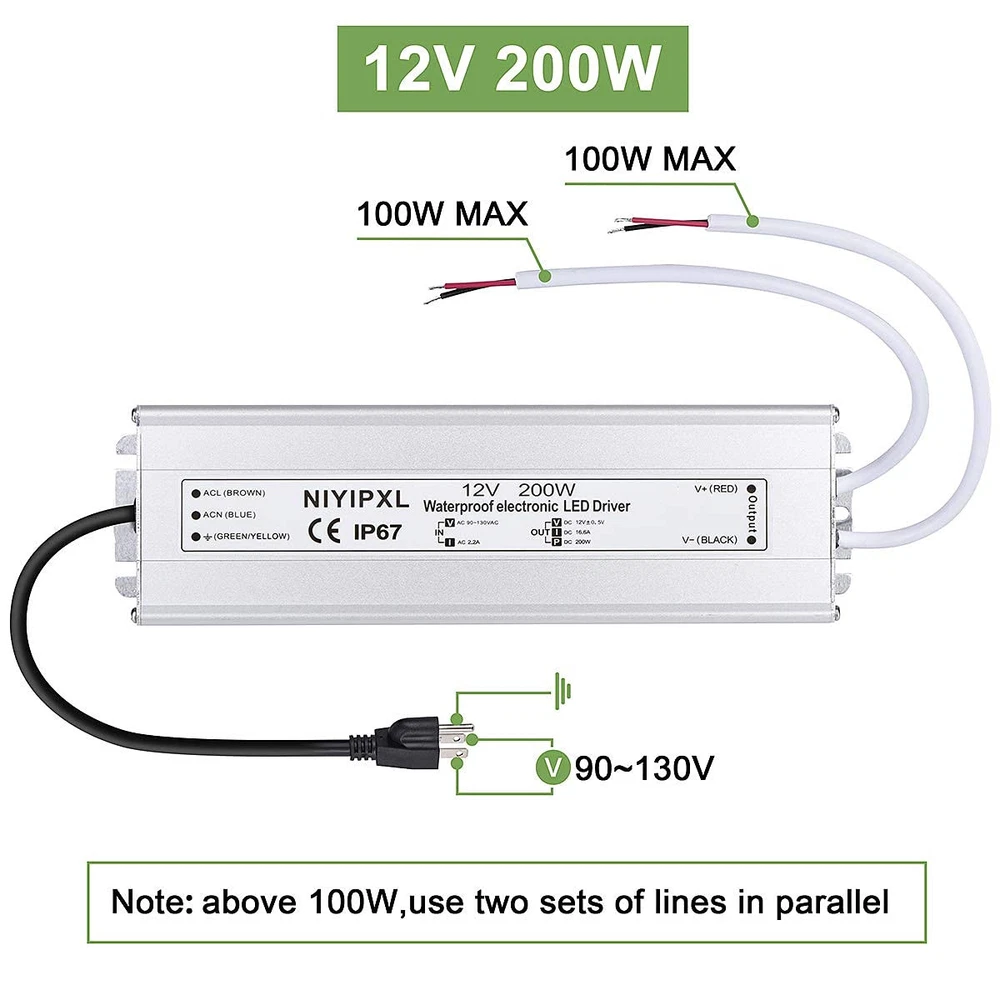 ◆The Model of LED Driver:Input: 90V-130V AC. Output: 12V DC 16.6A 200W ◆Automatic protection for Short circuit / overload / over voltage / over current / over temperature.Protection type: Hiccup mode, auto-recovery after fault condition is removed ◆Wide Range of LED Power Supply : Suitable for LED strip lights, led light bulbs ,Computer Project,Industrial,Outdoor Light and any 12V DC led lights ◆100% Waterproof IP67 protect for outdoor use.Aluminum metal housing, easy for heat dissipation and ensure stability ◆The LED driver is NOT dimmable, the LED driver is only compatible with RGB dimmers.LED transformer certification: IP67,CE,ROHS SELV etc.If you have any problem of our product, you can click “seller contact” button in your Amazon account to email us. we would be delighted to help you and reply you as soon as we can.