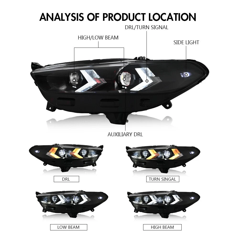 sunny-light new item Full LED Headlights Fit for Jetta MK6 2012-2018 Head Front Lamps Assembly Pair BUY NOW Pair Headlights Assembly w/ LED DRL For 2014-2021 Toyota Tundra Front Headlamps BUY NOW Pair Full LED Headlights For Toyota Tundra 2007-2013 Head Front Lamps Assembly BUY NOW RGB LED Headlights For Honda Civic 2016-2021 RGB DRL Sequential Turn Assembly BUY NOW Pair For 2022 2023 2024 Honda Civic 11th Gen Headlights LED Head Lamp Assembly BUY NOW LED Headlights For Toyota Camry 2018-2022 DRL 8-Lens Red Demon Eye Assembly BUY NOW RGB LED Tail Lights & Tailgate Light for Toyota Corolla 2020-2024 RGB Assembly BUY NOW RGB Full LED Tail Lights For 2015-2023 Ford Mustang w/ 11 Modes Sequential lamp BUY NOW Pair RGB LED Tail Lights for Honda Accord 2018-2022 RGB DRL Taillight Assembly BUY NOW LED Rear Tail Lights Assembly for Toyota US Corolla Hatchback 2020-2024 RH&LH BUY NOW RGB Color LED Headlights Assembly For Toyota Camry 2018-2024 Front Head Lamps BUY NOW Smoke LED DRL Projector Headlights For 2008-2015 Infiniti G37/Q60 Coupe 2-Door BUY NOW LED Headlights For BMW E90 E91 328 335 2005-2012 Sequential Turn Signal Assembly BUY NOW Pair Headlight For 2022-2025 11th Gen Honda Civic LED Sequential Turn Signal DRL BUY NOW LED Headlights For Toyota Camry SE LE XSE XLE TRD 2018-2023 Headlights Assembly BUY NOW Pair Full LED Headlights For VW MK7 Golf 2013-2018 Head Front Lamps Sequential BUY NOW Pair LED Headlights Red Demon Eye For 2022-2025 Honda Civic w/Startup Animation BUY NOW RGB LED Headlights For BMW 3-Series E90 E91 2005-2012 Sequential Front Lamps BUY NOW LED Headlights Assembly For Ford Fusion 2013-2016 DRL Headlamp Fitment: For Ford Fusion 2013 2014 2015 2016 Package Includes: 1 Pair (Driver Side + Passenger Side) Headlights Assembly Set (Including Some Installation Accessories) Specification: Brand :TT-ABC 100% Brand New Type: LED Headlight Assembly Light Color: as the picture shown Material:High quality ABS Plastic+PC+PMMA Lighting Technology: LED Color Temperature: 5500K-6500K Power: 45W Low beam , 65W High beam Full LED, No need to purchase additional light bulbs Functions: DRL +High Beam+Low Beam lights+Turn Signal+ Animation Installation Way:Plug and Play Life Span:100,000 Hours Waterproof Rate:IP68 Voltage:12 V-14V Fitment Type: Direct Replacement Current: 10A-20A Start-up:A few seconds of startup animation Recommend professional installation technicians for installation Feature: 1. Built in light bulb, using energy-saving LED bulbs, brighter than ordinary halogen bulbs, with a long service life 2. Modifying car LED headlights has advantages such as high brightness, low power consumption, and high brightness, as well as a longer service life, effectively increasing the driving safety of motor vehicles. 3. Modification of LED headlights: LED bulbs have a higher color temperature and are whiter than xenon and halogen lamps. They start without delay and turn on immediately. The beam is more concentrated, with lower power and a long service life (100000+hours) 4.Versatile Functionality: These headlights offer multiple functions to meet your needs. They feature daytime running lights (DRL) for increased visibility during the day, sequential turn signals for a stylish look, and both high and low beam options for optimal lighting control. 5.Certified with IP67 waterproof rating and DOT, SAE, and CE certifications, you can trust in the reliability and safety of thes Note: 1.Using your factory supplied connector/harness will avoid cutting or modifying any wires.It is plug and play, easy to install still professional installation is recommended. Benefits of LED making you safer on the road for other road users to see. 2.If you have any problem, please contact me . About us Payment Shipping Returns Contact us Feedback My store specializes in selling various car modification and customization products, including headlights, high beams, low beams, fog lights, contour lights, turn signals, brake lights, reverse lights, and interior lighting. At the same time, we have our own production factory and cooperate with hundreds of component factories, committed to providing customers with high-quality products, the most favorable prices, and a professional after-sales customer service team. Our goal is to meet the needs of our customers and provide them with an excellent shopping experience. 1.We can accept payment method is PayPal, Google Pay, Visa, Master Card, Amex and Discover and other payment way. 2.Immediate payment needs to be processed for items with Add to Cart option so that any promotional discounts can be applied to your order immediately. 3.Please confirm if the address and postal code are correct before placing an order! Convenient and fast shipping. 1.The package is Shipping from the US Stock by USPS,FedEx or UPS . 2.Shipment will be made within 1 business day after payment, and delivery will take 1-5 business days (excluding packages with a unit price below $50) 3.Please offer us your telephone number and correct zip code,or your order will be delayed since the courier will need it for the delivery.(not ship to Alaska, Hawaii and Puerto Rico). 4.Shipping Fee is include packing & handling charges. 5.International Customers:Import duties, taxes, value added tax and Other charges are Not Includes in the item price or shipping charges. These charges are the buyer’s responsibility and vary by country/location.These charges are not to be confused for additional shipping charges. 6.Please check with your country’s customs office to determine what these additional costs will be prior to bidding/buying. These charges are normally collected by the delivering freight (shipping) company or when you pick the item up. These charges are not to be confused for additional shipping charges. There are some tips for you: 1. If There are any problems with the product, please contact with us before leaving neutral and negative reviews feedback ,give me a Chance to make it right 2. If you are in 