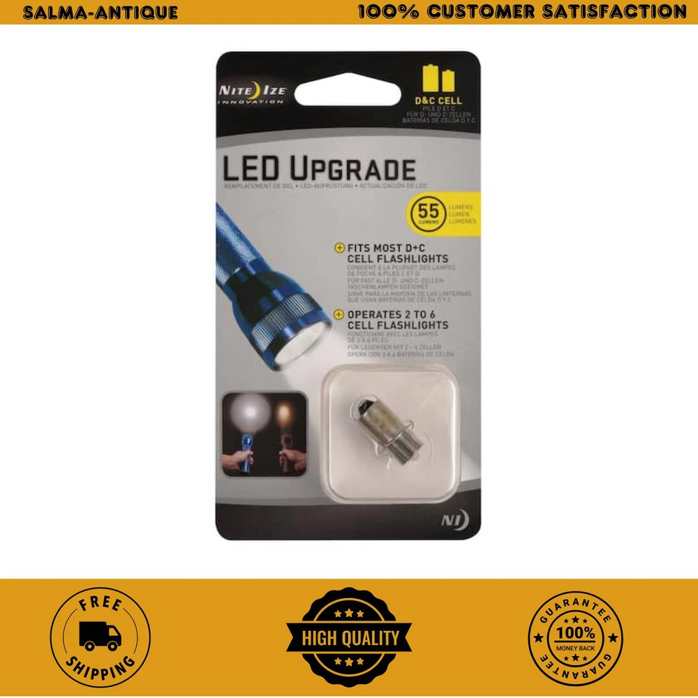 Welcome to our eBay Shop 1 Add to favorite 2 Contact us LED Flashlight Upgrade Kit C/D Cell , Estimated 55 Lumen output Trusted Seller we have a proven track record over the years. we have 1000s of satisfied customers all over the world. 100% Positive Feedback We have 100% postive feedback score on our eBay profile. 24 Hour Dispatch We dispatch orders every working day at 3 PM. So all the orders received will be dispatched within 24 hours. Fast & Free Delivery We use UPS and royalmail first class to post items to buyers. so that buyer can receive items quickly and on time. Item Description The Nite Ize LED Upgrade Kit converts most C/D (2-6 cell PR style flange) incandescent flashlights into bright, long lasting (100,000 hour) LED flashlights. It's as easy as replacing the bulb - instantly, your flashlight will emit a pure white (as opposed to the incandescent dull yellow) light, in spot to flood focus. Self-adjusting for all capacity levels, this efficient LED technology also ensures a much longer battery life, making it not only a useful, versatile improvement, but an environmentally-friendly and pocketbook-friendly one as well. Bulb Type: LED Flashlight type: Flashlight Bulbs Lumens: 55 Package Quantity: 1 Product Weight (lb.): 0.004 lb Safety & Security Product Type: Flashlights & Accessories Product Depth (in.): 0.52 in Product Height (in.): 0.96 in Product Width (in.): 0.52 in Features Estimated 55 Lumen output Fits most 2-6 cell C&D cell flashlights - PR flange style Simple to install and environmentally friendly About us Customer satisfaction is our highest priority! We encourage you to thoroughly read the items description to ensure it meets your needs before you make a purchase. If you have any questions, please feel free to reach out to us via eBay messages prior to ordering. We strive to provide accurate descriptions and images of our products, but please note that variations in color may occur due to lighting differences and monitor settings. All items are available at the time they are listed, but in the rare event that we cannot fulfill your order due to inventory issues, we will inform you promptly and issue a full refund. Thank you for choosing us for your shopping needs. We value your business! Payment Shipping We provide fast, free shipping. Most items are shipped within 1-3 business days of receiving cleared payment. We ship to the lower 48 contiguous United States only. We do not ship to P.O. Boxes or APOs. sometime we ship from multiple locations Returns We offer a 30 day return/exchange policy for most of our products. if the item was damaged or not as described Disclaimer Were sorry, but we do not honor product exchange requests. If you need to exchange an item received, you will need to go through the normal returns process identified in our returns section and then order the correct item, if it is still available. Orders are processed immediately and dispatched to fulfillment as soon as they are received. For this reason, we are typically unable to honor cancellation requests. If you need to cancel the transaction, please contact us as soon as possible and we will attempt to cancel the order. If the order has gone too far through the fulfillment process, we will be unable to cancel. In that event, you would need to wait until you receive the item and go through the normal returns process as mentioned in the returns section of our policies. Get in Touch If you have any question regarding our products. Feel free to contact us anytime using eBay messaging service. We will get back to you at our earliest. Copyright ©2023, All Rights Reserved. Listed by Sku Fetch