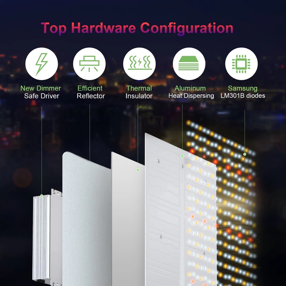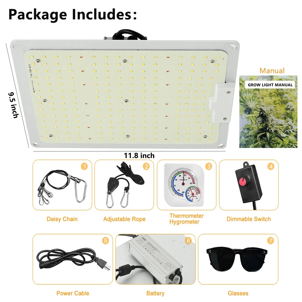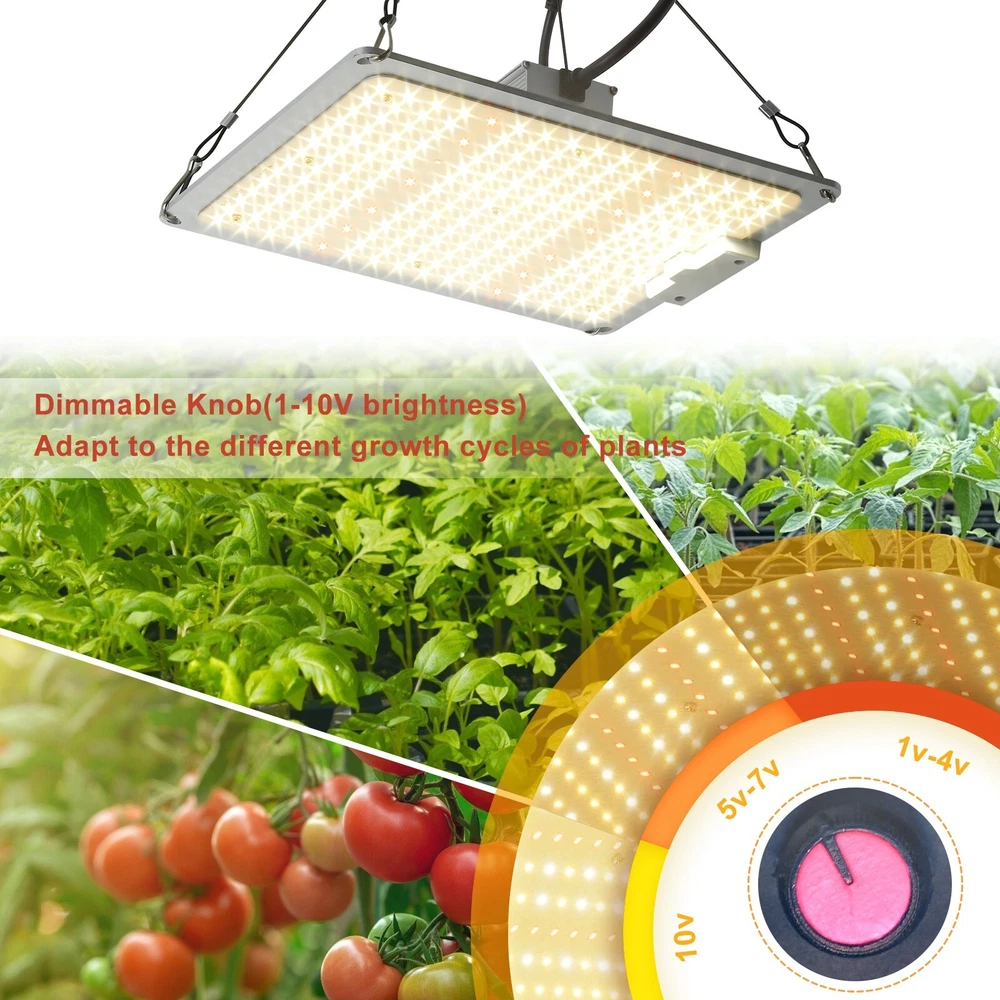 This LED grow light is the perfect addition to any greenhouse or home plant setup. With a wattage of 110W and a full spectrum output, it is ideal for rooting cuttings and seedlings, maintaining mother plants, and achieving vegetative growth. The light has a beam angle of 120° and comes with a timer, power cord, ballast, reflector/hood, and controller unit. The HakkaGrow brand LED grow light is made of aluminum and has a silent-running feature. It has a lifespan of 35000 hours and comes with a 1-year manufacturer warranty. The light can be controlled with a switch and has dimming settings of 25%, 100%, 75%, and 50%. It is compatible with magnetic, electromagnetic, and electronic ballasts. The LED grow light has a maximum temperature of 104°F and a minimum temperature of 32°F. It is suitable for use in the greenhouse and has a universal position feature.