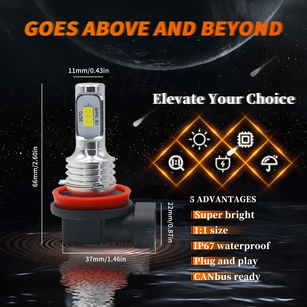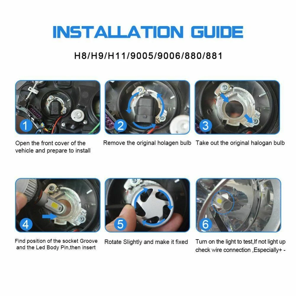 This listing includes 3 pairs of 6000K White LED Bulbs combo fit For Headlight + Fog Light This complete headlight package includes High Beam Headlight + Low Beam Headlight + Fog Light . Ultra Bright LED Bulbs, 2 - 3 times brighter than traditional bulbs Easy plug and play, safe connection Done long testing to make sure it fits your car!! When compared to OEM yellowish halogen lights, these LED bulbs are in a brightness HID matching xenon white color to give your car an awesome look! LED Headlight Bulb: Plug Type: High-Low Beam Voltage: DC 9V-36V(fit 12V,24V vehicles) Color Temperature: Pure White 6000K - 6500K IP67 rated water and dust seal,over 30000hrs lifetime Beam Angle: 270 degree@low beam,360 degree@high beam Material: Magnalium, Aluminum Operating Temperature: -40-80 degree Celsius Usage: Headlight (2pcs/set) High-Low Beam LED Headlight Conversion Kit Customized COB chip light source, 2 luminous faces(270/360 degree) no blind zone Engineering beam pattern design throw more light on road evenly at appropriate angle without foggy light Xenon white light reflect road paint/signs better to show clearer road situation during night driving 270 degree low beam angle with cut-off line,will not dazzle oncoming traffic All-in-one heat conduction+high speed mute fan system keep the light bulb in appropriate working temperature Built-in constant current CPU, instant full brightness without start-up relay Two-way heat dissipation channel All-in-one Magnalium Aluminum alloy profile as heat conduction system, 360 degree heat radiating Fog Light Bulb: Plug Type: Fog Light Voltage: DC 9V-36V(fit 12V,24V vehicles) Color Temperature: Pure White 6000K - 6500K Lifespan: >30, 000 hrs Light Color: White This new product has high luminous efficiency, low power consumption and long service life. 360 degrees illumination with magnified projector lens Heat resistant, prevent overheat problem Easy installation, Direct plug in and play. Best used for Fog/ Driving lights Faster on/ off response time Energy saving, environmental protection, Stable performance, through strict test, Use safer driving Package Included: 2 x LED high beam bulbs 2 x LED low beam bulbs 2 x LED fog bulbs On Nov 11, 2024 at 17:46:09 PST, seller added the following information: