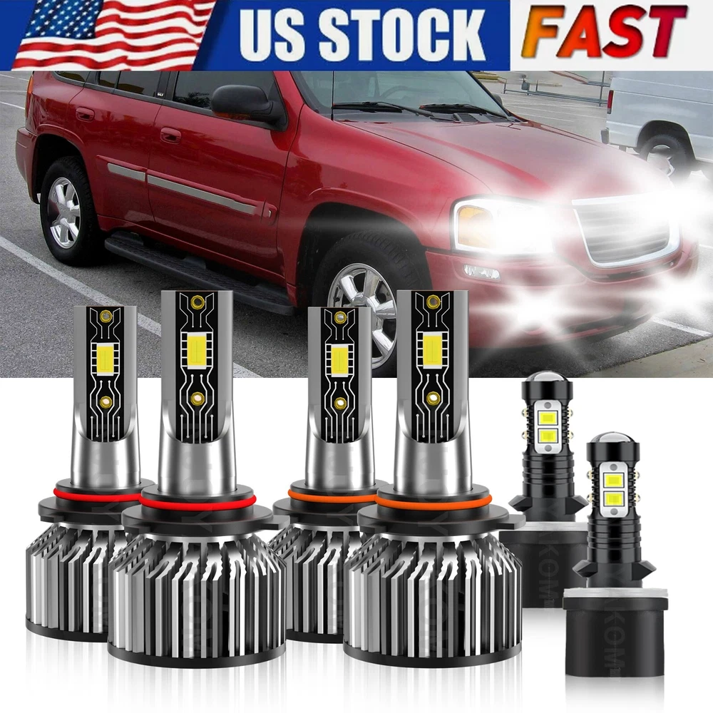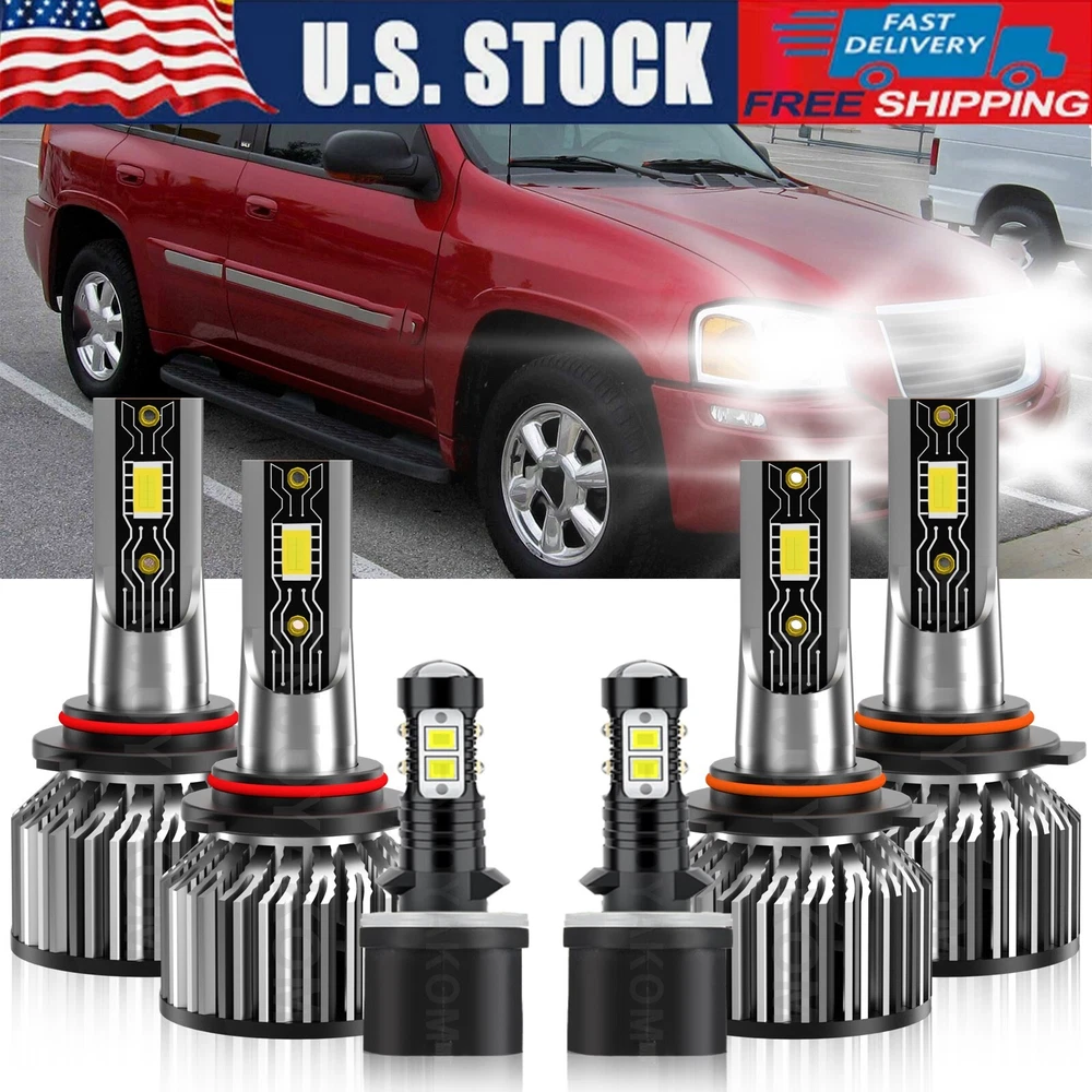 LED Headlight High Low+Fog light Bulbs 6500K kit white For GMC Envoy 2002-2009