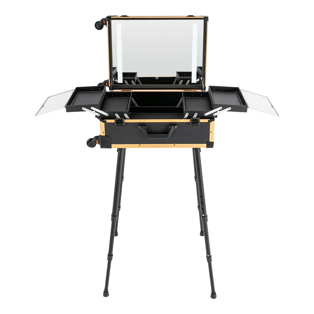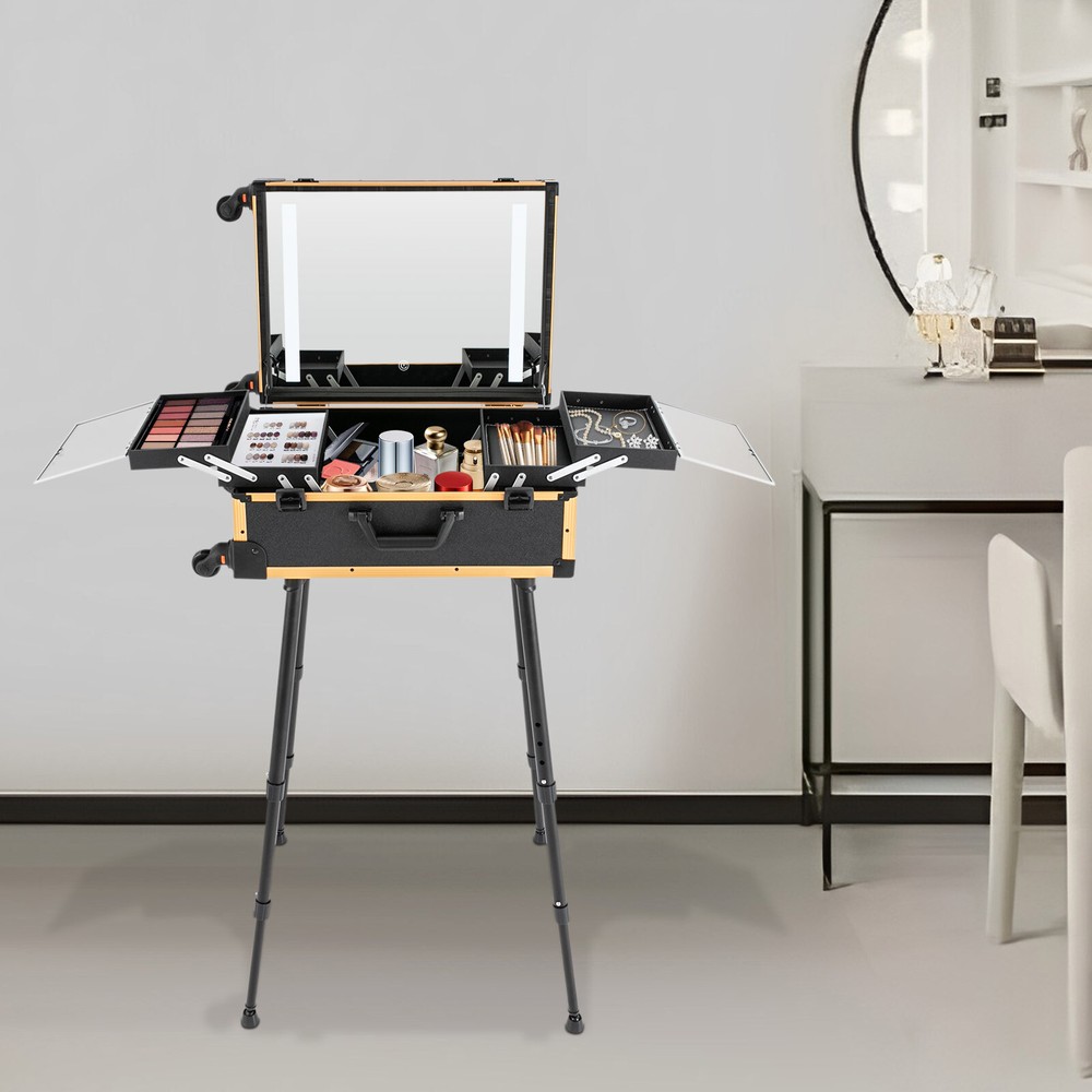 Whether you're working or traveling, a professional makeup case will be a great convenience. This makeup case is made of high-quality material, which is strong and durable. The compartmentalized design makes the items neatly organized, and the clear mirror and LED lights are convenient for you to apply makeup in various environments. It is ideal for professional makeup artists and cosmetologists. Rolling Makeup Case Trolley Train Box Organizer with LED Lighted Mirror DESCRIPTION High-quality Material: The product is made of high-quality aluminum alloy, medium fiberboard, ABS, and PVC with oxidation and electroplating processes, which are strong, pressure-resistant, waterproof, impact-resistant, corrosion-resistant, rust-resistant , and has a long service life. Humanized Design: The large mirror with LED light can be easily adjusted between warm, neutral and white light with the touch of the switch and the brightness of the light can be infinitely adjusted with a long press of the switch, which can help you see more details of your makeup and restore the true state of your makeup. Categorized Storage: This product has four storage trays for makeup brushes, nail polish, foundation, eye shadow, hair clips, and other tools (not included). The neat and orderly distribution and sorting trays keep the tools in order, which is an essential and good helper for you. Convenient to Use: This product is equipped with a 12V charging jack, an external power jack, and a power jack. After connecting the power cord, it can be connected to an external curling iron, cell phone, and hair dryer (not included) to meet your needs when working. Protect Your Privacy : Two locking buckles with keys securely protect your valuables inside the box and maximize your privacy. Flexible Movement: 4 universal wheels, a telescopic trolley rod, and a top handle make it easy to move the case up and down stairs, in and out of cars and elevators. The detachable universal wheels enable you to replace them conveniently when damaged, which is easy and cost-efficient. Ideal Gift: With a stylish appearance and practical functions, this product is an ideal birthday and holiday gift for family, friends, fashionistas, and beauty lovers. Effortless Cleaning: Thanks to the smooth surface and simple structure, you can easily wipe off the dirt on it with a soft cloth. Good Customer Service: We stand behind all our guests and look forward to assisting you with your purchase. It is our pleasure to answer your confusion and questions. The end of the story between us is not "we sell and you buy". Details Adjustable Support Legs: The support legs have four adjustable heights (29.33in, 30.71in, 32.09in, and 33.46in) for people of different heights. Removable Tray: Two hooks and loops on the inside of the case make it easy to secure the tray and remove it for individual use. Wide Opening : With a wide opening, it is easy for you to store and retrieve certain items without messing up other items in the box. Application This product is suitable for travel, wedding, event, and home makeup use, and can organize makeup brushes, nail polish, foundation, eye shadow, hair clips, and other tools. It is ideal for makeup artists, hair stylists, nail technicians, and cosmetologists. Package Included 1* Makeup Case 4* Legs 1* Storage Bag 2* Keys 1* USB Cable 1* Power Cord All Accessories for Installation DESCRIPTION 2 Notes Please note that cosmetics and make-up tools are not included. Wear and tear is normal for cosmetic cases after use. Please try to avoid excessive impacts and drops during daily use to minimize the wear and tear of the case. Please use soft tools for cleaning. Please use water to clean, away from corrosive liquid. Please avoid long-term exposure to the sun. Please remove the debris around the wheels in time to keep the dragging smooth. Please allow the slight color difference caused by the shooting light and the 1-3 cm error due to manual measurement, and make sure you do not mind before ordering. ↓↓↓ Payment Delivery details Terms of sales About us Contact us Payment We accept ebay payment 。 Fees such as import duties, taxes are not included in the item price or shipping costs. These charges are the buyer's responsibility. Delivery details Shipping: 2-9 working days to: USA Terms of sales We maintain high standards of excellence and strive for hundred percent customer satisfaction. Feedback is very important to us. We hope that you contact us immediately before you give neutral or negative feedback, so that we can address your concerns. It is impossible to address issues if we do not know about them! About us Your satis faction is our ultimate goal. We work hard to earn your trust and future business. Our certified technicians have tested each item before shipping. The unit comes with 1 year limited warranty on all manufacturing defects. a) If you receive a defective item, you may return it or ask for a discount. Please contact us within 14 days after you receive the package. b) What you returned must be intact and in its original packaging as re? u. Customer is responsible for shipping costs of the returned item. c) We will cover the cost of shipping back t with the shipping rate indicated in the registration page. We will send you a new unit or refund the full payment you paid. Thank you. Contact us Business Hour Business Hour: Monday To Friday: 8:30 AM to 5:00 PM (Beijing China time) Due to time zones, our reply to your questions may not be immediately. But within above working time, we will reply your email within 24 hours. If it's non-workdays, please kindly be patient and wait till Monday. Please contact us with ebay message. Please feel free to contact us if you have any questions. Monday To Friday: 8:30 AM to 5:00 PM (Beijing China time) Due to time zones, our reply to your questions may not be immediately. But within above working time, we will reply your email within 24 hours. If it's non-workdays, please kindly be pati