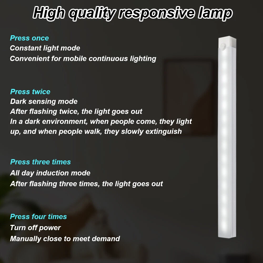 Description Please kindly Note: The sensor mode works in both darkness and daylight with motion detection. Motion Sensor Night Light Portable Closet Wall Lamp USB Charge Kitchen Bar Under Cabinet Cupboard Stairs Wireless DC 5V Electronicsrepair-h LED Motion Sensor PIR Night Light Cordless Battery Powered Closet Stair Light Description Please kindly Note: The sensor mode works in both darkness and daylight with motion detection. Motion Sensor Night Light Portable Closet Wall Lamp USB Charge Kitchen Bar Under Cabinet Cupboard Stairs Wireless DC 5V Specification: 1.Application: Under bed, bedside,corridor,wardrobe,drawer,cupboard,cabinet,Bar,Kitchen,Closet 2.Function: The light will work automatically when you enter the sensing area. The light include the lithium battery or you can charge it with with USB wire, convenient installation. 3 mode: AUTO-OFF-ON three mode. AUTO Mode: The light ON when you pass by and OFF automatically 15 seconds later. ●ON Mode: The light keep ON.●OFF Mode: The light OFF. 4.Induction method: Infrared sensor 5.Input charging voltage:5V,1A 6.Sensing range: Angle:≤120°,within 2-5 meter; 7.Installation:Take off the adhesive strip and stick it to the place where you want to fix it with the adhesive, and install the lamp by using magnet. 8. Battery charging: Red light: Charging. Green light: Charge Complete. 9.This light is No-waterproof, please use it in dry environment. Note: Lithium battery inside, please use it under 50 Celsius and away from fire. Tips: The sensing device is located in the middle of the lamp, the middle sensor is more sensitive, the farther away from the middle point, the weaker the sensitivity Features: 1.This light with Hand Wave Sensor Switch is the perfect solution for kitchen, restroom those places you don’t want to touch the switch when your hands are wet, just wave your hand upon the switch to activate the light (the working distance is 2-5m), 2.it is perfect for Bedroom Kitchen and Cabinet, Wardrobe, Closet, Stairs 3.lightweight and Easy Installation: You can stick it anywhere you want with adhesive strip or screws. Package List: 1* Cabinet Cold Light Item Specifics Brand Unbranded Type Night Light Sensor Type Infrared sensor Lighting Technology LED Features 3 mode,Infrared sensor,Portable ,Easy Installation Color White Power Source USB Charge Room Bedroom Kitchen and Cabinet, Wardrobe, Closet, Stairs Payment We only accept payment via eBay. Please make your payment within 5 days after auction ends otherwise a non-payment dispute will be opened. We will ship to your eBay address. Please make sure your eBay address is correct before you pay. Shipping After receiving your payment, your order will be shipped within 1-2 business days from Australia. Delivery times may vary , especially during peak periods or toward remote area. You may choose what service you need. Economy Delivery : 2-6 Working Days Standard Delivery : 2-5 Working Days Express Delivery : 1-3 Working Days We are not responsible for anything late or lost by logistics. Returns Restocking fee: There will be a 15% restocking fee if returning mistakenly order or no longer needed item, read the tips below on how to avoid it. Read the item description carefully instead of only the listing title Choose the correct item from the drop-down menu (if applicable) before clicking on the add to cart button. If you have any questions regarding the item, please send us a message before purchasing. DOA (Dead On Arrival) : Take a picture of the outer box if you have received a damaged package, check all the contents inside for any physical damage and send the pictures to us as evidence within 3 Days for a return or refund. We are not responsible for any kind of compatible issues, or problems related to any specific software or games. Contact Us If your item has any issues, do NOT leave a Negative feedback without contacting us through eBay first, we will try our best to get it resolved and provide an address for you to return the item once it is qualified. Returns will be processed within (7) business day after receiving the item in original condition. Electronicsrepair-h DESCRIPTION PAYMENT SHIPPING RETURN POLICY CONTACT US LED Motion Sensor PIR Night Light Cordless Battery Powered Closet Stair Light Description Please kindly Note: The sensor mode works in both darkness and daylight with motion detection. Motion Sensor Night Light Portable Closet Wall Lamp USB Charge Kitchen Bar Under Cabinet Cupboard Stairs Wireless DC 5V Specification: 1.Application: Under bed, bedside,corridor,wardrobe,drawer,cupboard,cabinet,Bar,Kitchen,Closet 2.Function: The light will work automatically when you enter the sensing area. The light include the lithium battery or you can charge it with with USB wire, convenient installation. 3 mode: AUTO-OFF-ON three mode. AUTO Mode: The light ON when you pass by and OFF automatically 15 seconds later. ●ON Mode: The light keep ON.●OFF Mode: The light OFF. 4.Induction method: Infrared sensor 5.Input charging voltage:5V,1A 6.Sensing range: Angle:≤120°,within 2-5 meter; 7.Installation:Take off the adhesive strip and stick it to the place where you want to fix it with the adhesive, and install the lamp by using magnet. 8. Battery charging: Red light: Charging. Green light: Charge Complete. 9.This light is No-waterproof, please use it in dry environment. Note: Lithium battery inside, please use it under 50 Celsius and away from fire. Tips: The sensing device is located in the middle of the lamp, the middle sensor is more sensitive, the farther away from the middle point, the weaker the sensitivity Features: 1.This light with Hand Wave Sensor Switch is the perfect solution for kitchen, restroom those places you don’t want to touch the switch when your hands are wet, just wave your hand upon the switch to activate the light (the working distance is 2-5m), 2.it is perfect for Bedroom Kitchen and Cabinet, Wardrobe, Closet, Stairs 3.lightweight and Easy Installation: Y