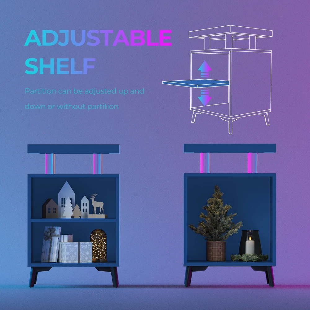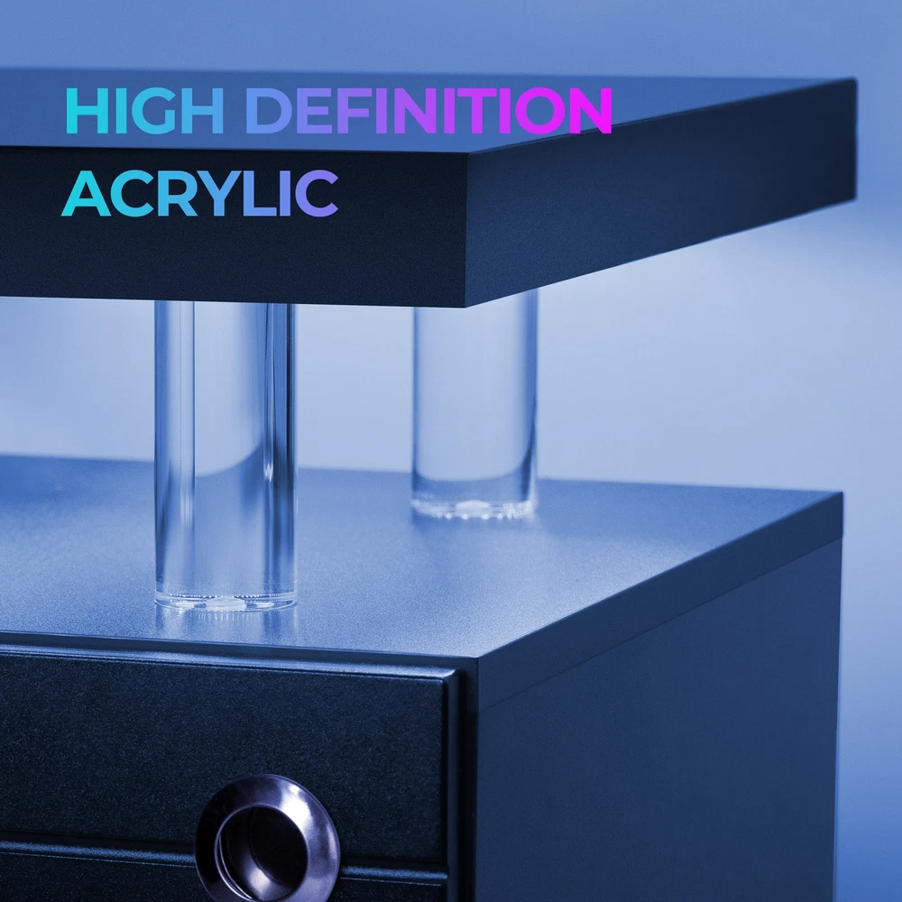 LED Nightstand with Storage DrawersThe bedside nightstand comes with beautiful Multi-colour RGB LED Light, RF Wireless + Button Switch multiple control modes. You can freely set the brightness,color, mode and speed function, and design your light show to your heart's content. With LED Lights Nightstand Makes Your Life Smarter, more suitable for your needs.2 Drawers Storage & 2 Storage PlacesThis end side table has 2 drawers for sliding storage, The sliding drawer is perfect for private, the open space in the middle is convenient for daily use. The phone or cup could also be placed on a tray. Plenty of storage space Great for living room, bedroom, home office.Nightstand with Multifunctional LED Light StripsThis small cabinet can be placed in any of the place. Therefore, it can become a Free Shipping Over $49.99* Details LED Nightstand LED Bedside Table End Tables Living Room with 4 Acrylic Columns, Product Description: LED Nightstand with Storage Drawers The bedside nightstand comes with beautiful Multi-colour RGB LED Light, RF Wireless + Button Switch multiple control modes. You can freely set the brightness,color, mode and speed function, and design your light show to your heart's content. With LED Lights Nightstand Makes Your Life Smarter, more suitable for your needs. 2 Drawers Storage & 2 Storage Places This end side table has 2 drawers for sliding storage, The sliding drawer is perfect for private, the open space in the middle is convenient for daily use. The phone or cup could also be placed on a tray. Plenty of storage space Great for living room, bedroom, home office. Nightstand with Multifunctional LED Light Strips This small cabinet can be placed in any of the place. Therefore, it can become a bedside table, end table, sofa side table, nightstands, file cabinets, coffee table and so on. The space-saving design and neutral color will blend well with any furniture whether it is as a bedside table or as a sofa table in your living room.