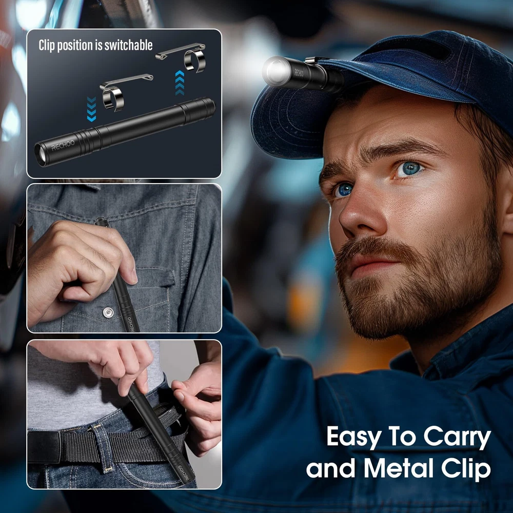LED Pen Light 4 Pack, Lightweight, Small Bright Pen Flashlight with Clip, Waterproof Portable Pocket Flashlight for Home, Emergencies, Inspection (Battery Included) Bright Pen Light: Each pocket flashlight features a super bright LED bulb that provides bright light in the dark and is small enough to fit into tight spaces to illuminate hard-to-see work areas; Comes with 8 AAA batteries, ensuring immediate use for emergencies as soon as you receive it Potable & Lightweight Pen Flashlight: Extremely compact, only 5.2 inches long and weighs only 0.06 lbs; Comes with a removable clip, making these small flashlights easy to put in your pocket or bag, and clip them to a belt, hat, and notebooks freeing up your hands for easy carrying Sturdy & Waterproof Flashlight: The IPX4 waterproof rating makes these flashlights for emergencies ready for use in inclement weather such as rain; In addition, these flashlights for home are made from military grade aluminum, which is rust and corrosion resistant and long-lasting Wide Applications: This small pocket bright flashlight has a wide range of uses, perfect for working, repairing, camping, emergency survival, mechanics, nursing, medical use, and outdoor sports Gift with Value: Get bright LED pen light flashlight*4, AAA batteries*8, and user manual in one set; Make a delightful surprise for your parents, friends, and neighbors; This small flashlight will be an ideal present for holidays such as Halloween, Christmas, and Thanksgiving, as well as other special occasions like birthdays, anniversaries, and Father's Day Excellent After-Sales Service: The excellent after-sales service will be provided for all flashlights. If you have any problems with our flashlights, please feel free to contact us; We'll reply to you within 24 hours Shipping We offer FREE shipping on all orders! We ship within Three business days of payment, usually sooner. We use a selection of shipping services such as UPS, FedEx, USPS etc. We only ship to the lower 48 states, no APO/FPO addresses or PO Boxes allowed. Local pickups and combined shipping options are not provided at this time. Return You can return a product for up to 30 days from the date you purchased it. Any product you return must be in the same condition you received it and in the original packaging. Please keep the receipt. Payment We accept payment by any of the following methods: PayPal Please pay as soon as possible after winning an auction, as that will allow us to post your item to you sooner! Feedback Customer satisfaction is very important to us. If you have any problem with your order, please contact us and we will do our best to make you satisfied. Contact Us If you have any queries, please contact us via ebay. We usually respond within 24 hours on weekdays. Please visit our eBay store to check out other items for sale! Thank you for shopping at our store.