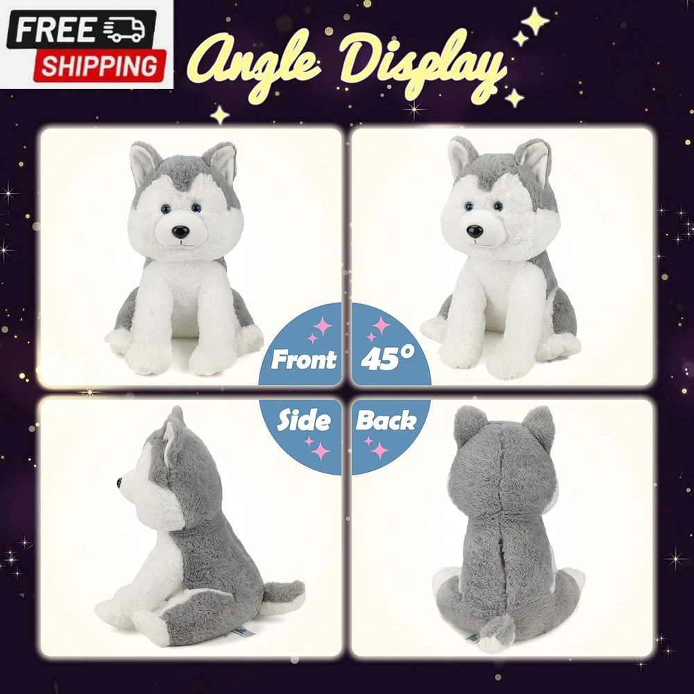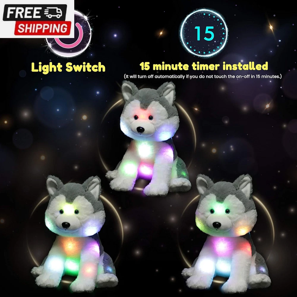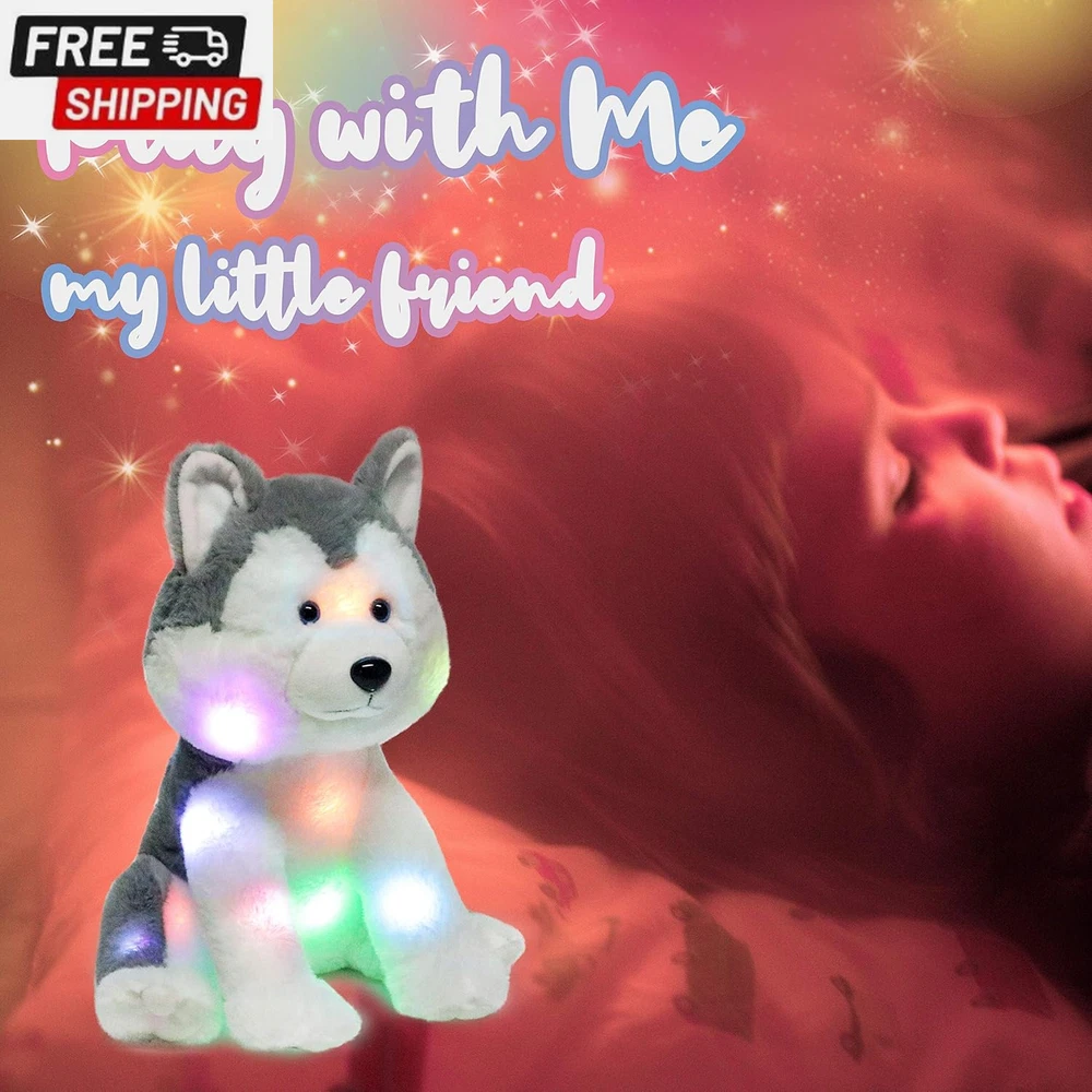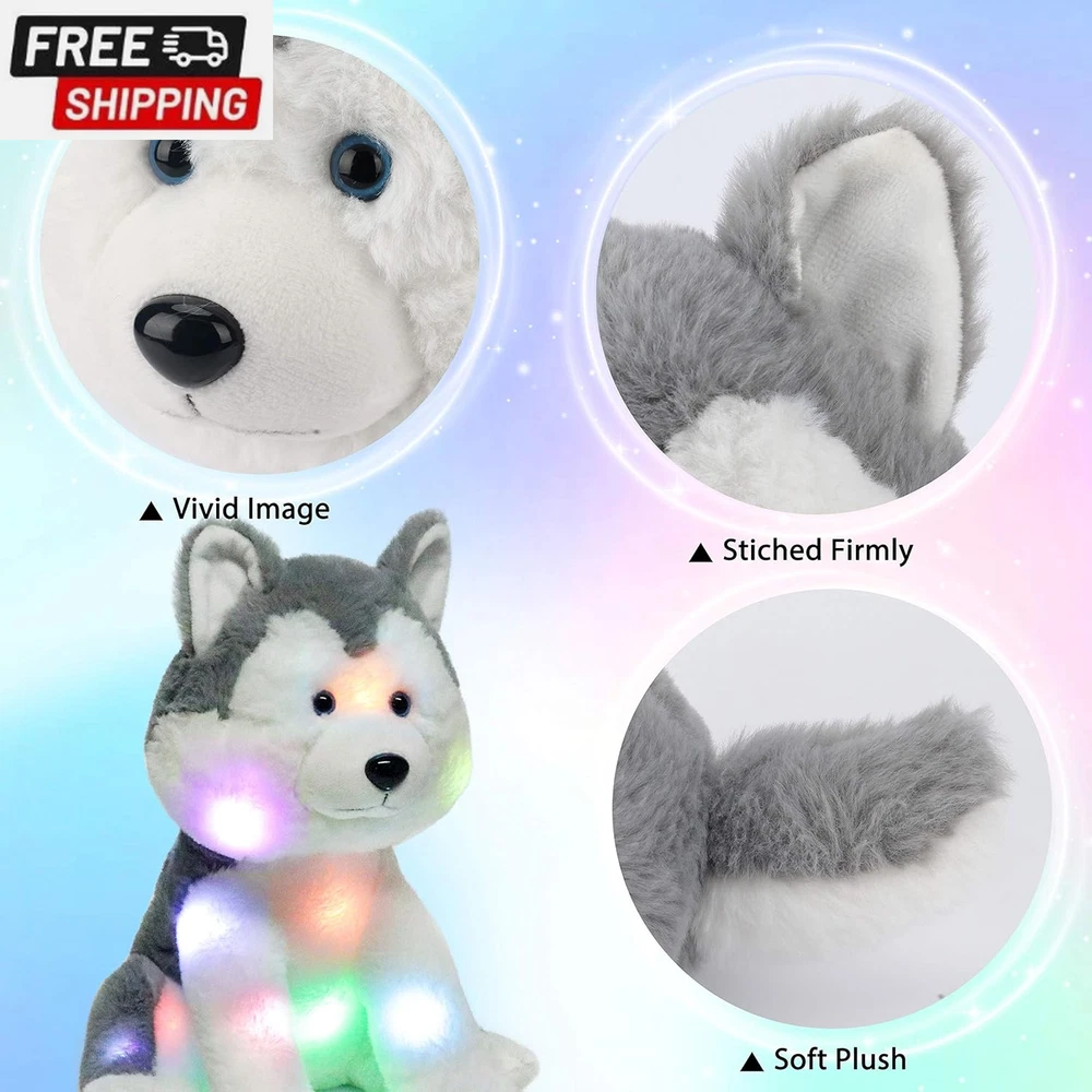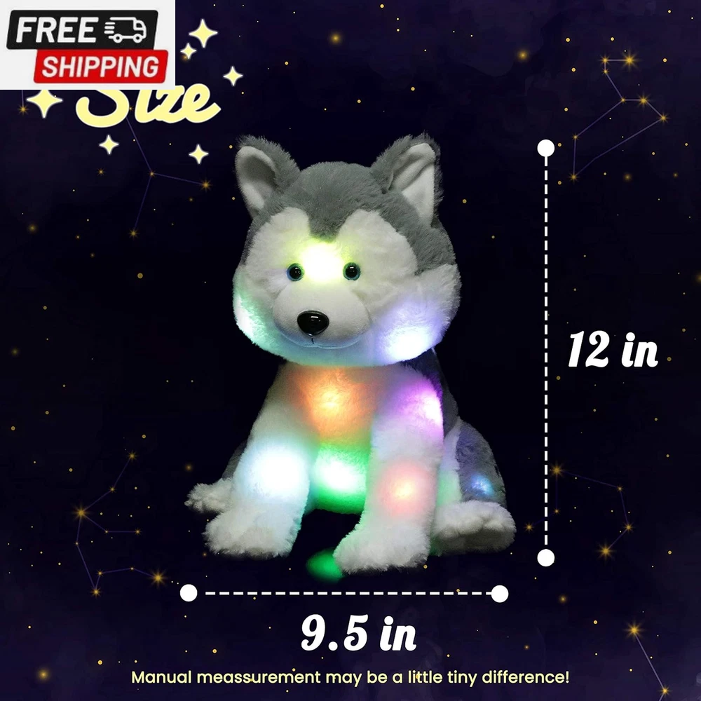 LED Plush Husky Light up Stuffed Animal Dog Floppy Puppy Night Lights Glow in the Dark Birthday Festival for Kids Toddler Girls, Gray, 12'' A CUTE HUSKY: This cuddly husky stuffed animal has a vivid image. It features a quiet crouching husky. Quite a lot of people are living with dogs, however, to those who loves dog but are allergic to the fur or kids who are too little to hug a four-leg friend with paws and fangs, this glow soft plush husky may be a good alternative. HOW TO PLAY: Adults should open the Velcro on the back of the husky, and then open the battery box with a screwdriver. Put in 3 AAA batteries (NOT INCLUDED), and turn the switch to “ON”. Press the switch button, it will work. Thus, kids can play with the husky and share it with friends. NOTICE: Please keep it away from water and fire. CREATIVE COMPANION FOR KIDS: Equipped with colorful LED lights inside, this cozy husky will glow in the dark when turned on and will comfort you. It also helps both kids and adults relax when taking a nap in the afternoon or accompanying those scared of dark during bedtime, which will help reduce anxiety and help them self-soothe in order for a better relax, so it's not just toy. COLORFUL CHANGING LIGHTS & AUTOMATIC TURN OFF: This plush husky features of glowing in the dark and the light will change multiple colors every few seconds. Additionally, we installed a 15 minute timer inside which will turn off automatically if you do not touch the on-off in 15 minutes. While, you can still turn it off as you like by pressing the switch again. CONSIDERATIONS: Please do NOT wash it and keep away from fire. It takes 3 AAA batteries, but the batteries are not included. Remove the battery, if you do not use it for a long time. If you have any problems with the product, please tell us though Amazon message. We will reply as soon as possible and provide you a satisfying solution. Product Description Hopearl Plush LED Husky Toy This cuddly husky stuffed animal has a vivid image. It features a quiet crouching husky. Quite a lot of people are living with dogs, however, to those who loves dog but are allergic to the fur or kids who are too little to hug a four-leg friend with paws and fangs, this glow soft plush husky may be a good alternative. Hopearl Plush LED Husky Toy Adults should open the Velcro on the back of the husky, and then open the battery box with a screwdriver. Put in 3 AAA batteries (NOT INCLUDED), and turn the switch to “ON”. Press the switch button, it will work. Thus, kids can play with the husky and share it with friends. NOTICE: Please keep it away from water and fire. Hopearl Plush LED Husky Toy Equipped with colorful LED lights inside, this cozy husky will glow in the dark when turned on and will comfort you. It also helps both kids and adults relax when taking a nap in the afternoon or accompanying those scared of dark during bedtime, which will help reduce anxiety and help them self-soothe in order for a better relax, so it's not just toy. Hopearl Plush LED Husky Toy This plush husky features of glowing in the dark and the light will change multiple colors every few seconds. Additionally, we installed a 15 minute timer inside which will turn off automatically if you do not touch the on-off in 15 minutes. While, you can still turn it off as you like by pressing the switch again. Shipping Fast shipping is very important for us. Our standard US shipping service is FREE. Your order will be shipped within 2-3 business days upon full payment received. Your order will be delivered within 2-3 business days after the handling time. We only ship to the confirmed PayPal address. We reserve the right to cancel any order for any reason at any time. We are not responsible for undeliverable addresses. Returns and payment We offer a 30 days return policy from checkout winning date. We allow only PayPal as payment method FeedBack Your feedback very important to us, after you get your package and you are satisfied with our service please leave us positive feedback If you have any problem with your order / any questions please before leave any type of feedback For any questions, using eBay contact system Please visit our eBay store to check out other items for sale! Thank you for shopping at our store.