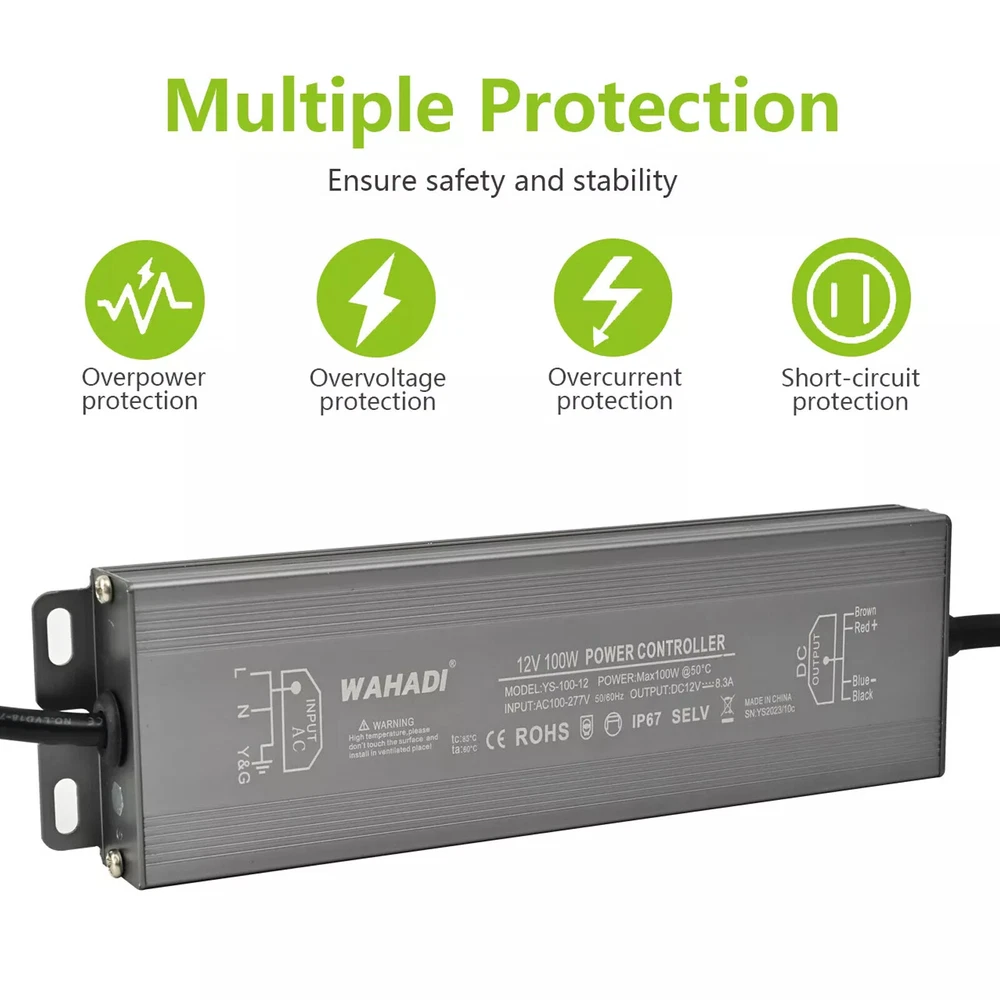 Product Detail: Note:If you have any questions, please contact us before open any case, we promise will solve the problem for you. Thanks! Waterproof led power supply 100W TO DC 12V This waterproof led power supply is widely used for outdoor/indoor led lights, such as led strip lights, led module, led signs, landscape lights, camera computer project, ect. Ultra slim size suitable for narrow space, full filled with silicone glue, no dust go in, waterproof feature protect this low voltage transformer operate stable. led transformer 200w 12v Product Specifications Input: AC 100-277V 50/60Hz Output: DC 12V, 8.3A Wattage: 100W Efficiency: 88% Working Temperature: -20℃ to +60℃ Working Humidity: 20%-90%Rh Package list 1 x 12V led power supply Note: 1. Please allow minor deviation due to manual measurement. 2. Due to the difference between different monitors, the picture may not reflect the actual color of the item. 3. Communication is the best way to solve the problem. If you have any problems after purchasing, please contact us in time, before opening return or case. Payment: We accept PayPal ONLY currently. Payment must be made within 3 business days. Shipping: 1. Item will be shipped within 1-5 business days from CN Stock or US Stock according to the item location. 2. Sometimes the ship date will be delayed due to a shortage. We will inform you via message. 3. Please leave available address and phone # in delivery information. Seller are not responsible for wrong address. 4. Please indicate your personal requirement such as colors, packages, value of declaration etc. at PayPal's message when make payment. 5. We will NOT responsible for any delay during delivery including but not limited to customs postage checking, strike, force measure etc. Customs Declaration: Import duties, taxes and charges are not included in the item price or shipping charges. These charges are the buyer’s responsibility. Please check with your country’s customs office to determine what these additional costs will be prior to biddingying. Return & Refund: Returns are accepted within 30 days. Please read the item description and check the pictures carefully before bidding. Return or refund is available only if item DOA or there's error in item description causing the item not fitting your need. In such cases, seller pays for all related shipping cost if any. Returns are also acceptable if buyer purchased this by mistake and item still in good condition for reselling. Buyer is responsible for all related shipping cost. Feedback: As long as you are happy with your purchase, please kindly leave us for it is very important for our store performance. If there is any problem with your order, please contact us and give us a chance to resolve your problem Before leaving us a negative feedback.